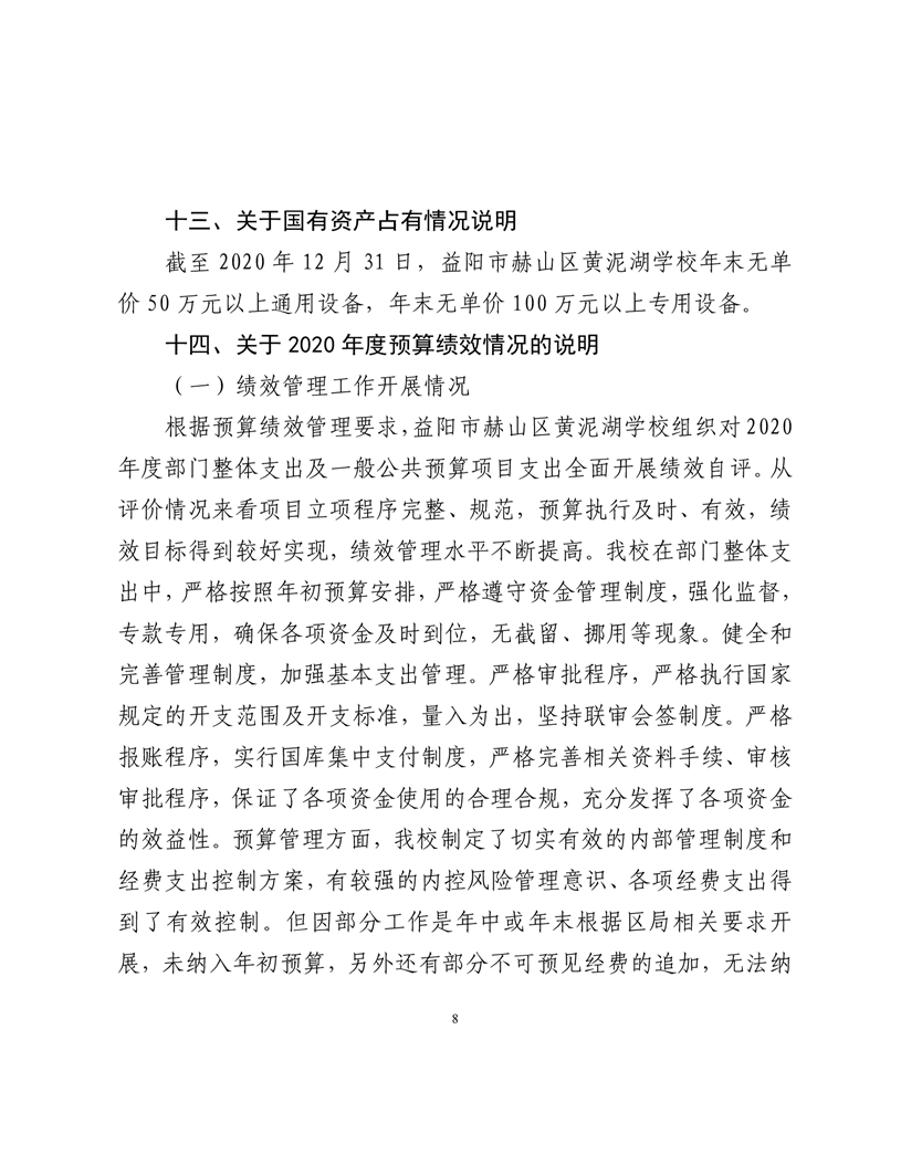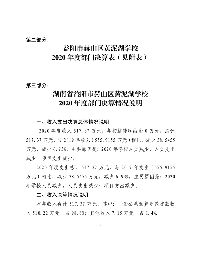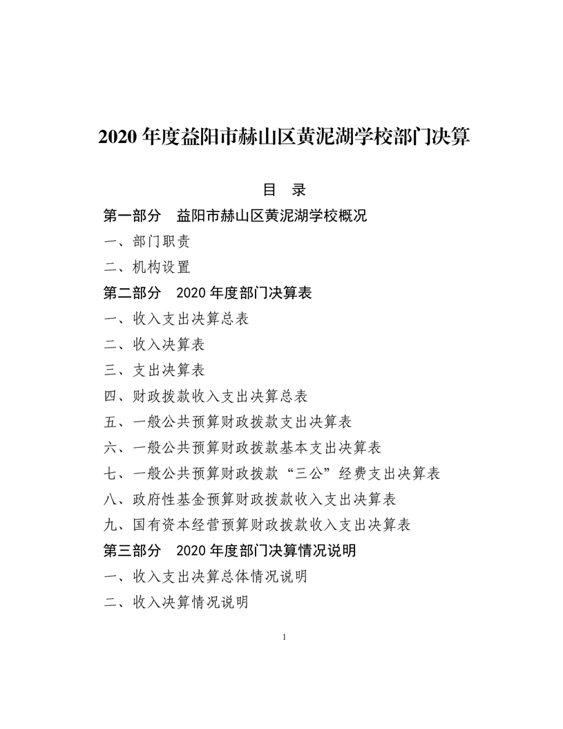 2020年度益阳市赫山区黄泥湖学校部门决算