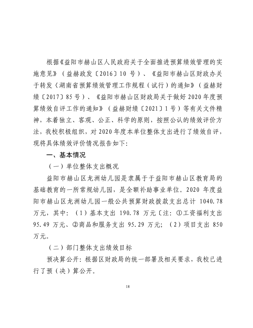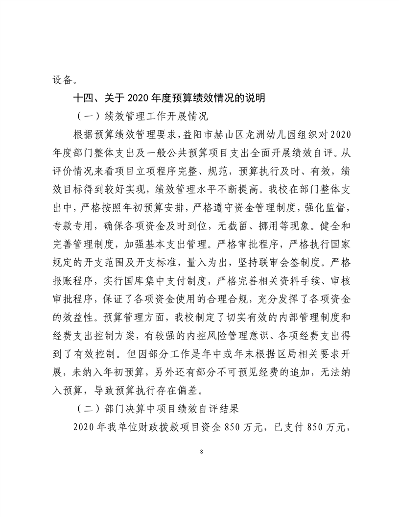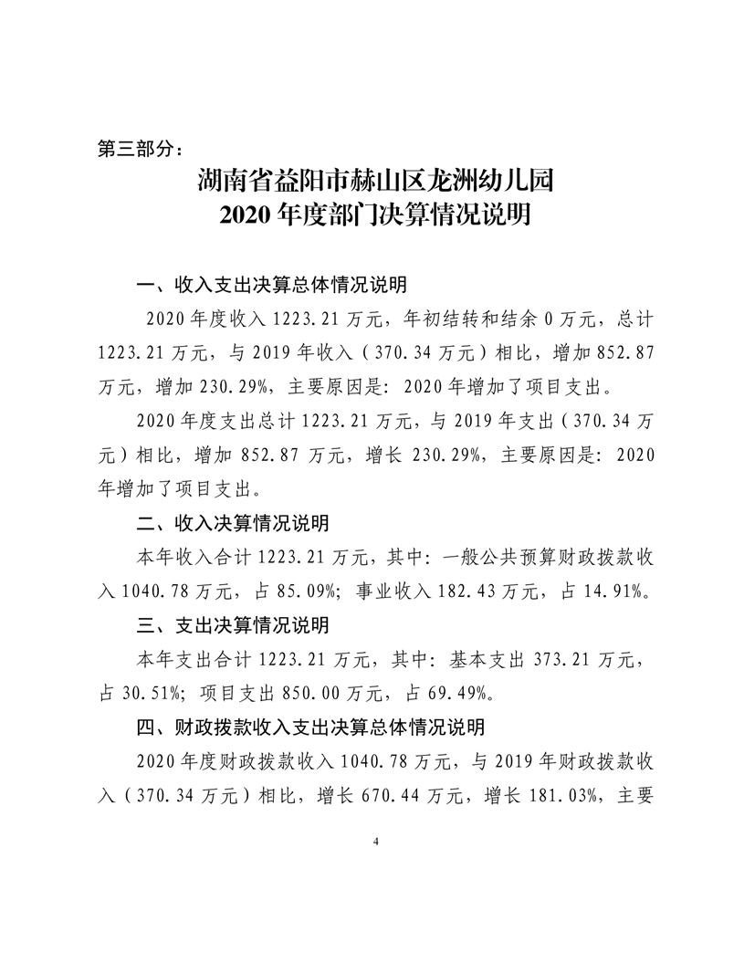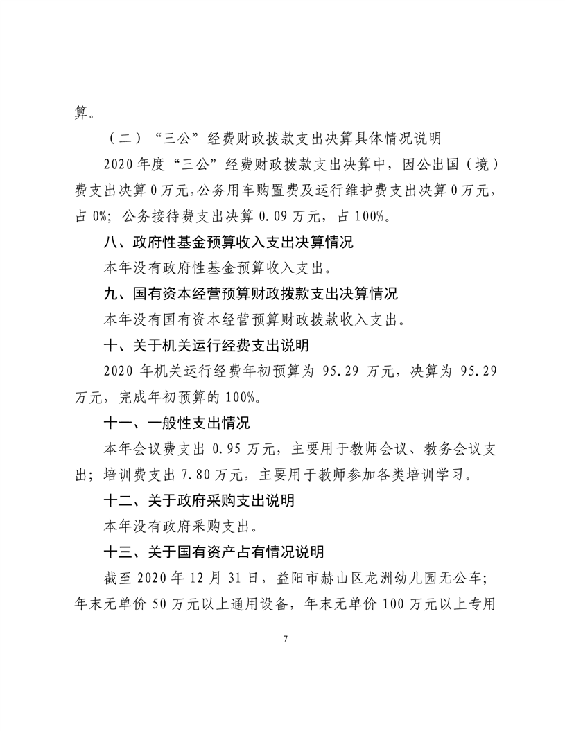 2020年度益阳市赫山区龙洲幼儿园部门决算