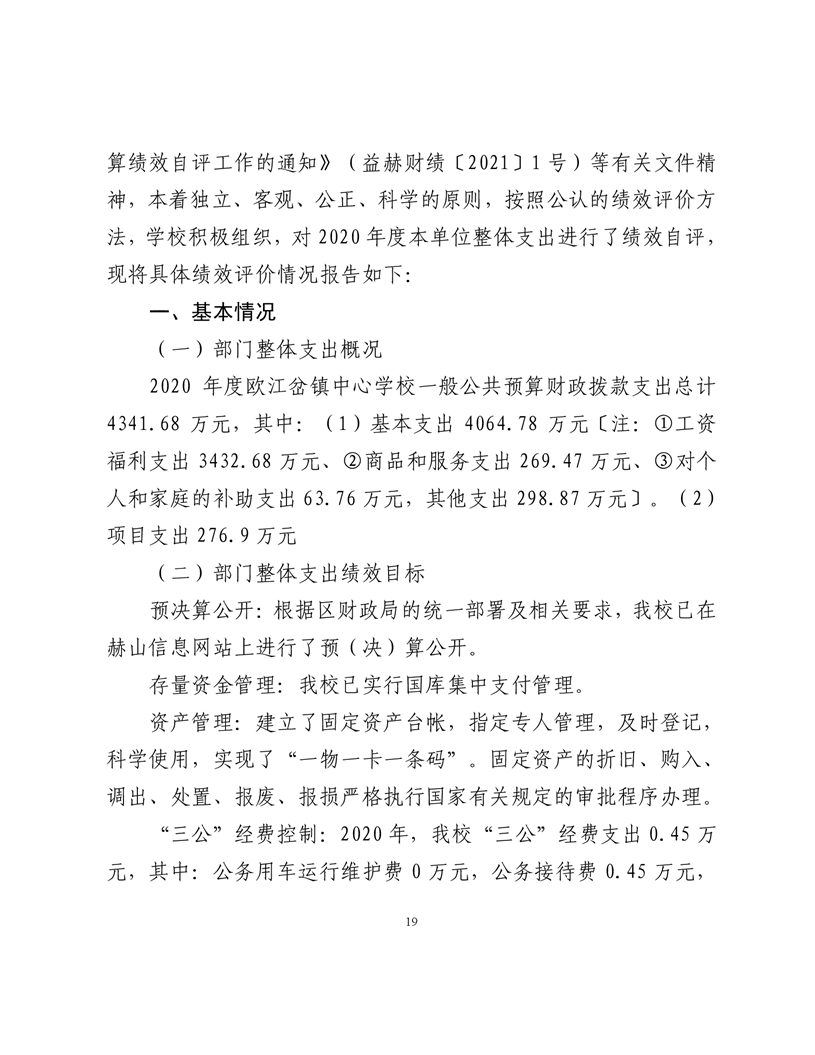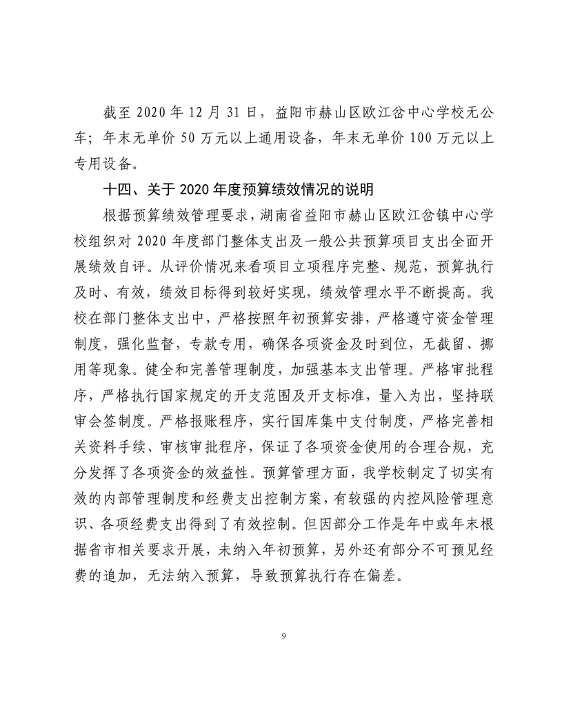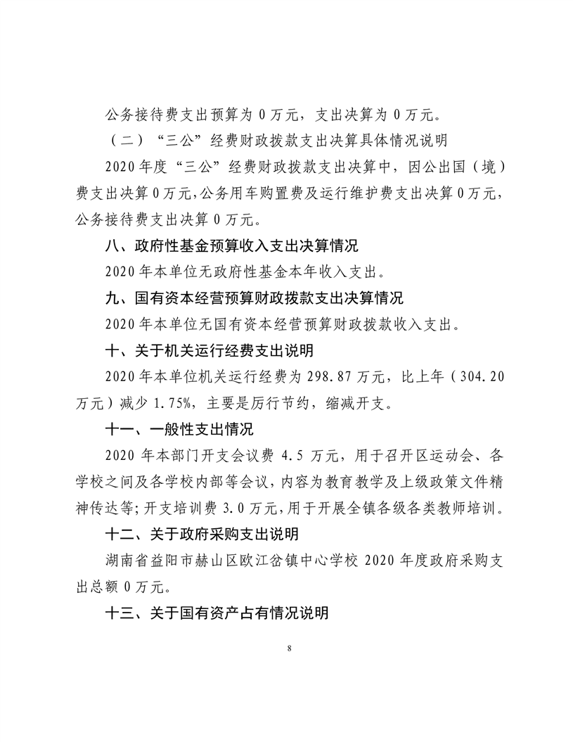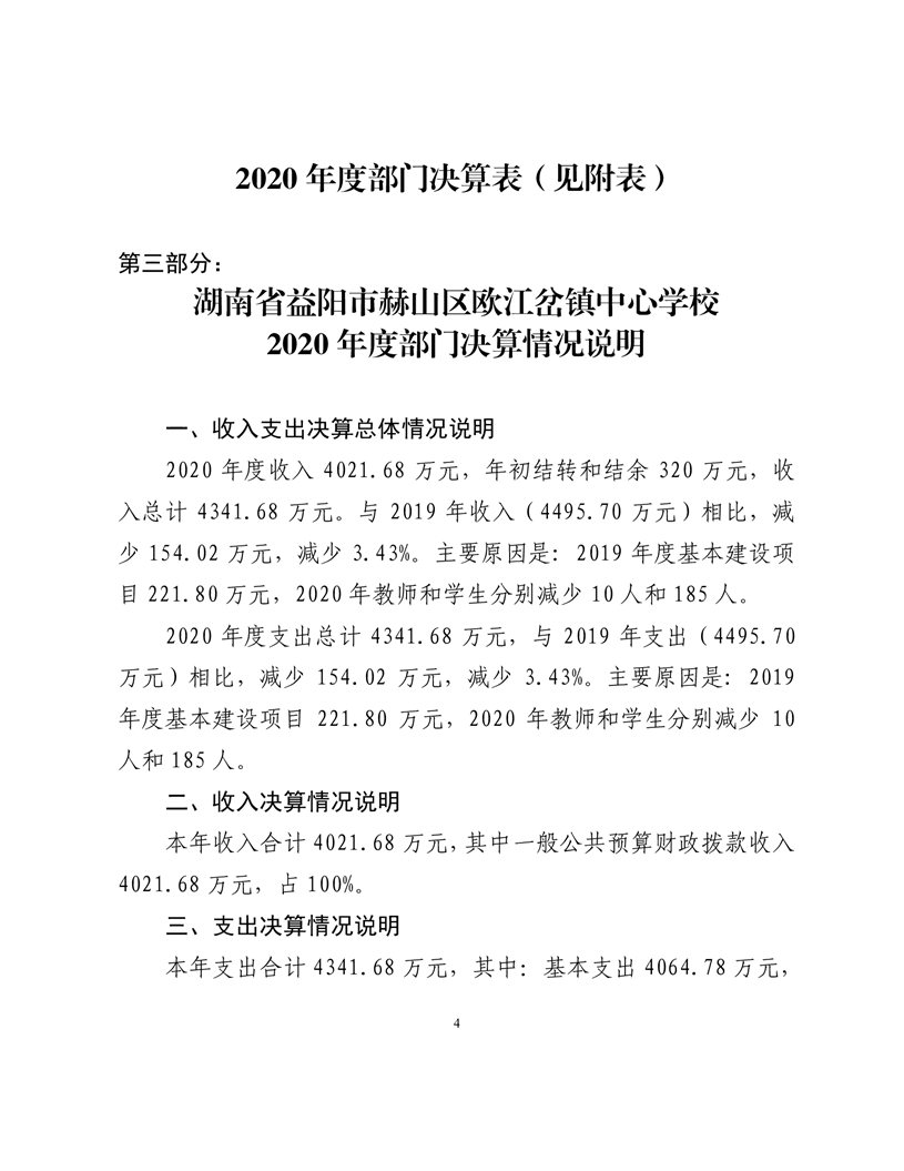 2020年度益阳市赫山区欧江岔中心校部门决算