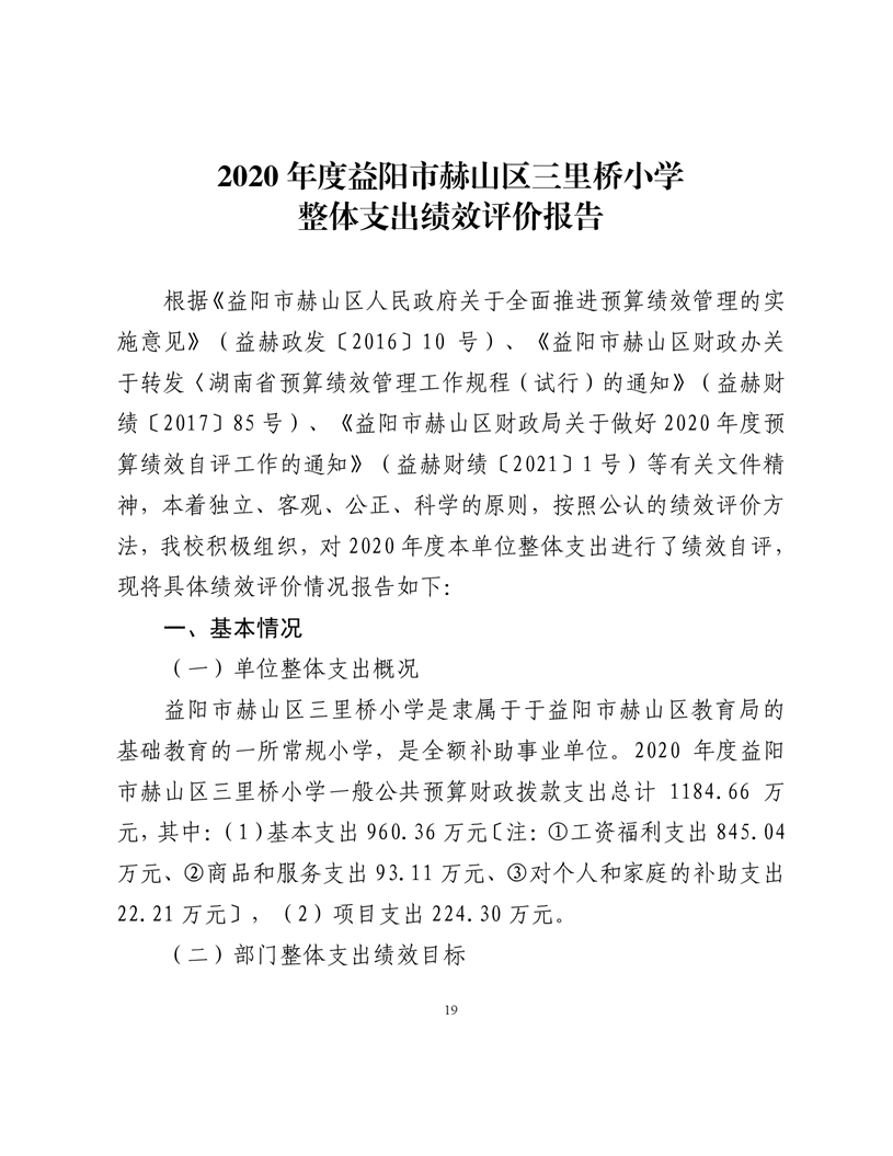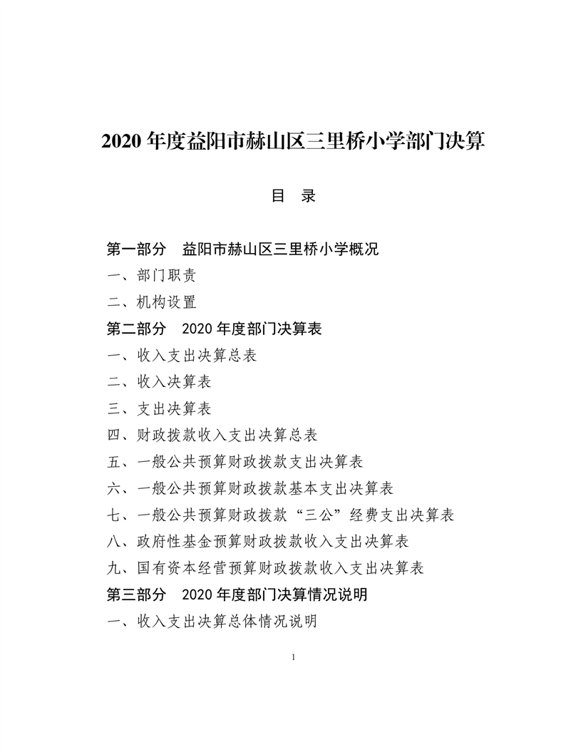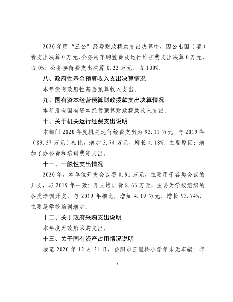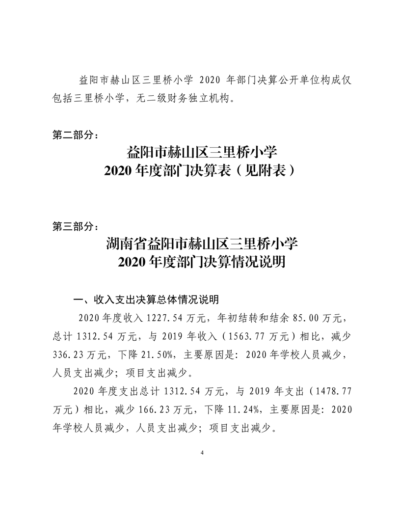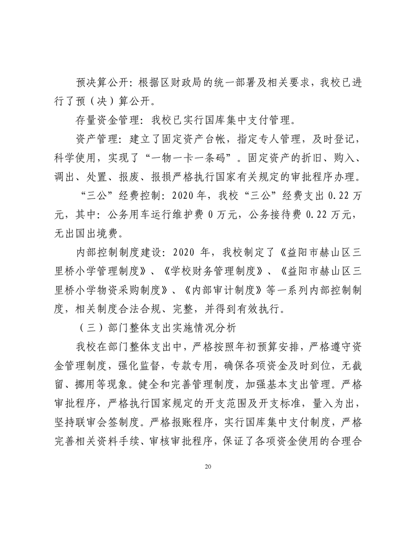2020年度益阳市赫山区三里桥学校部门决算