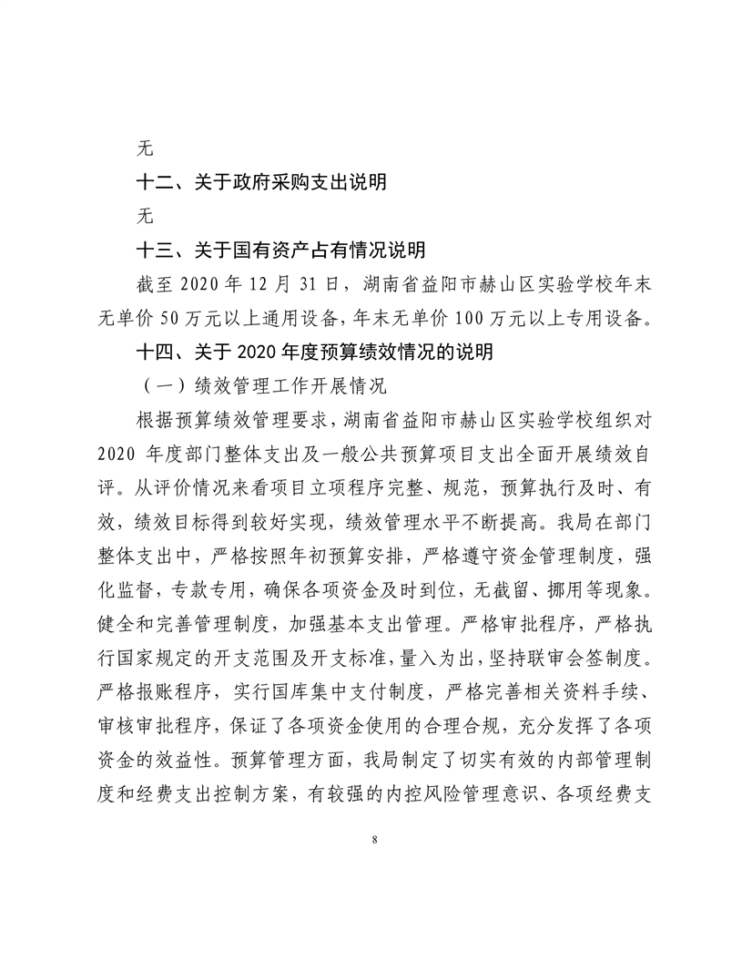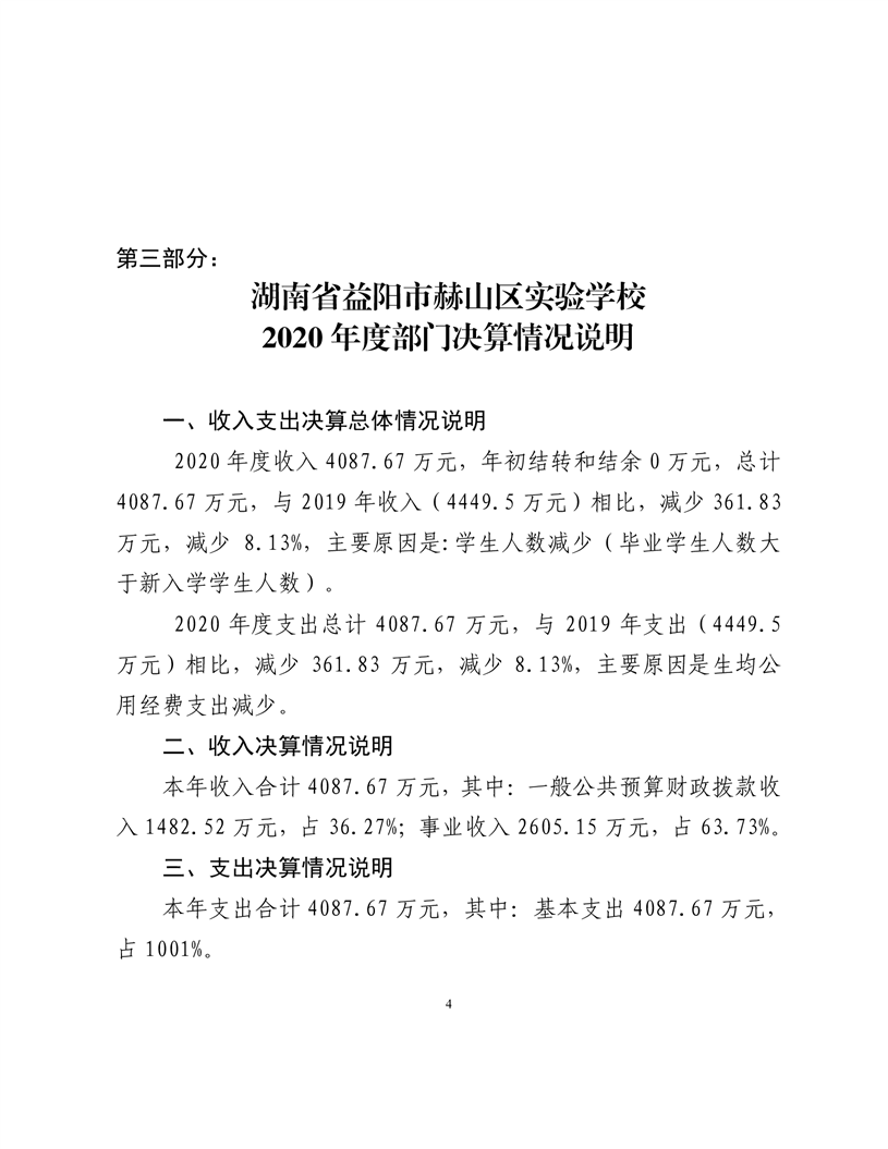 2020年度益阳市赫山区实验学校部门决算
