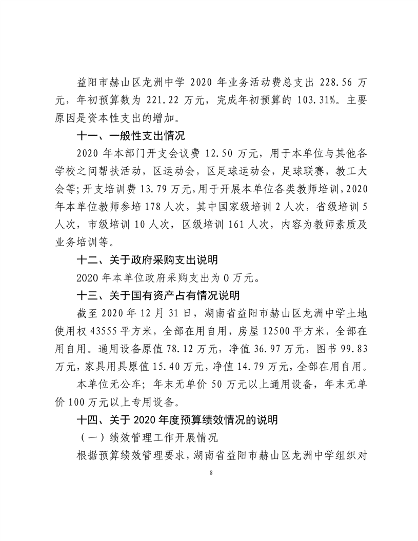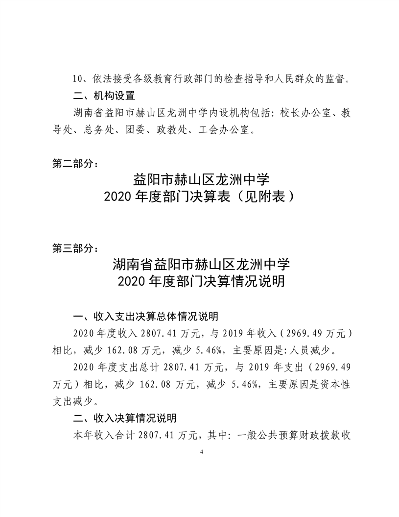 2020年度益阳市龙洲中学部门决算