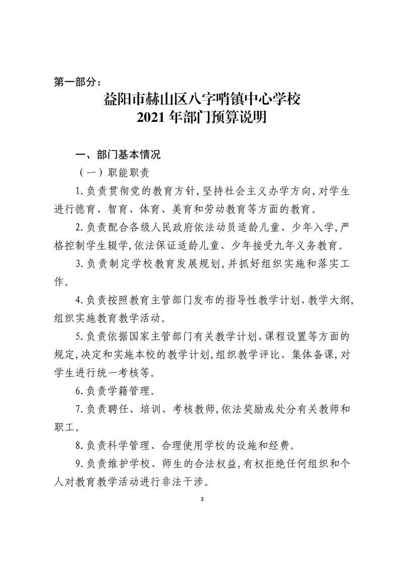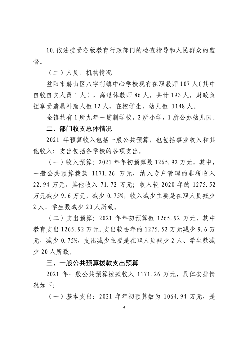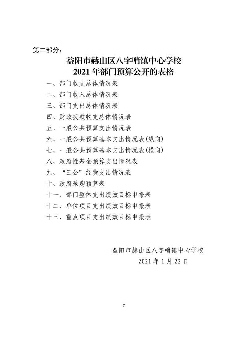 八字哨中心学校2021年预算公开报告
