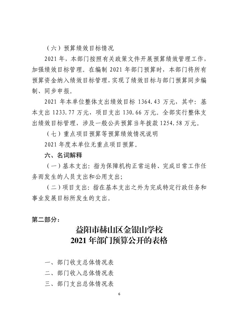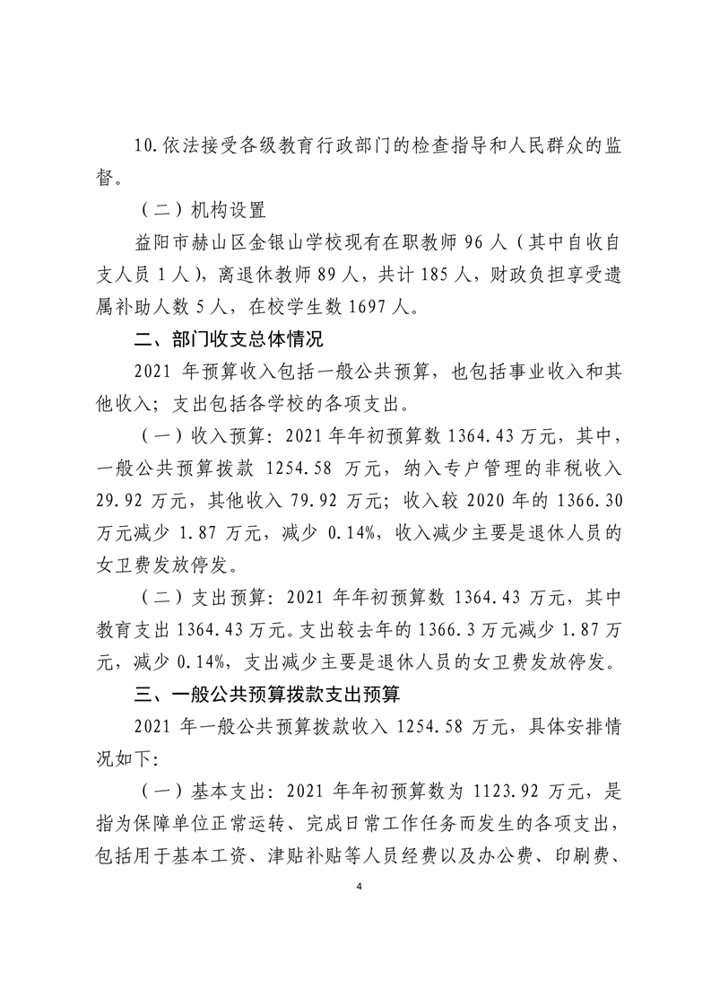 益阳市赫山区金银山学校2021年预算公开报告