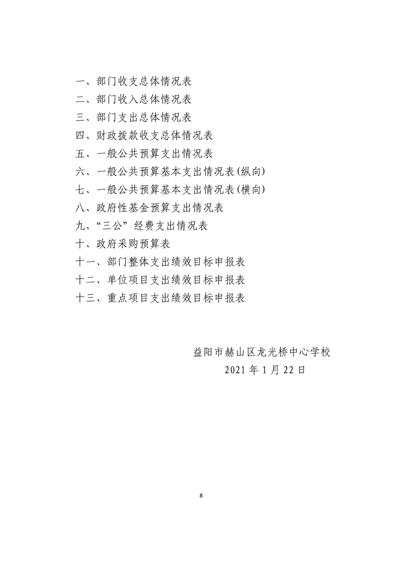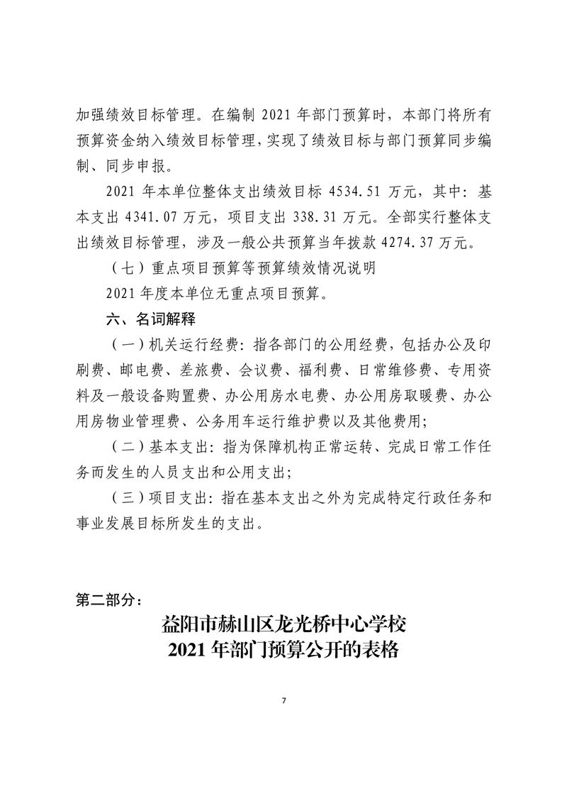 益阳市赫山区龙光桥中心学校2021年预算公开
