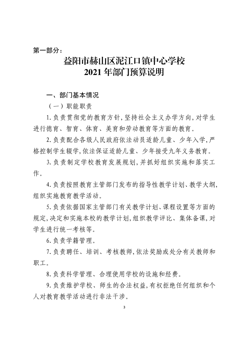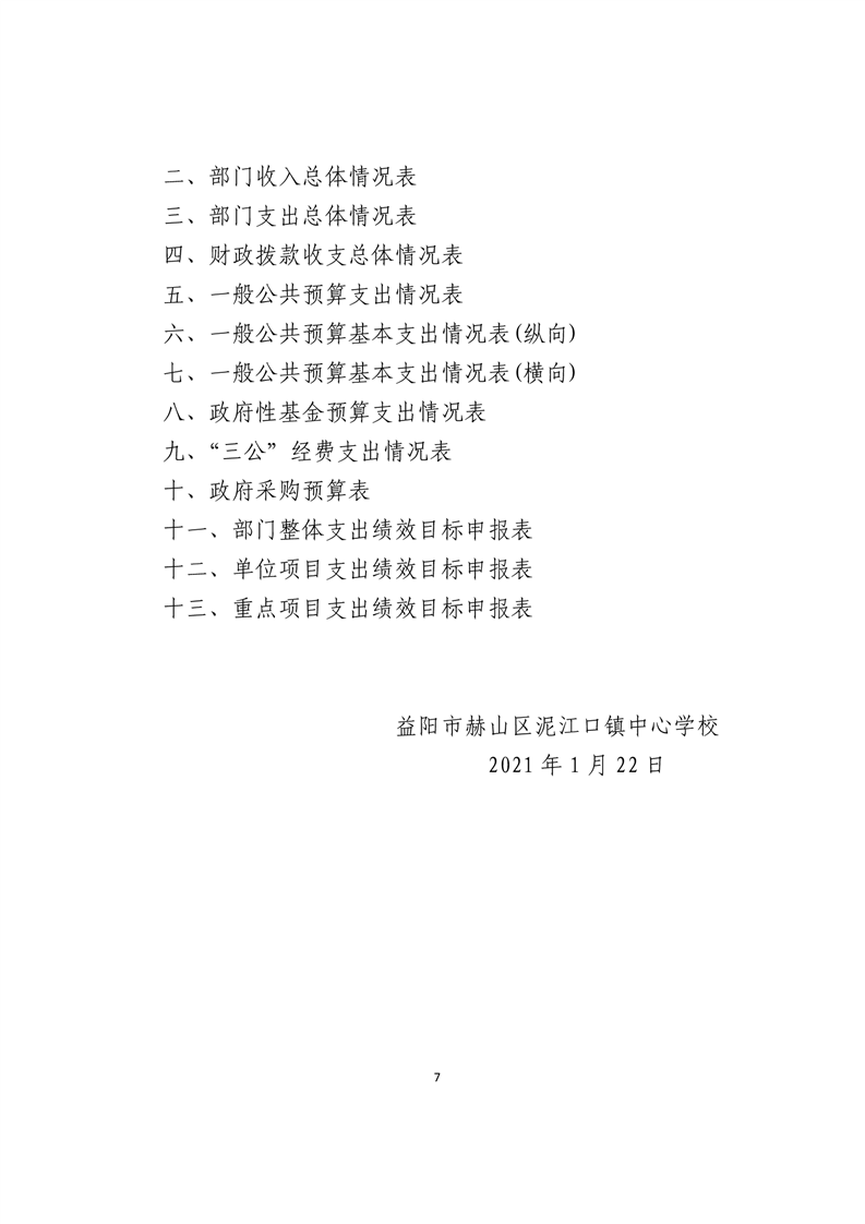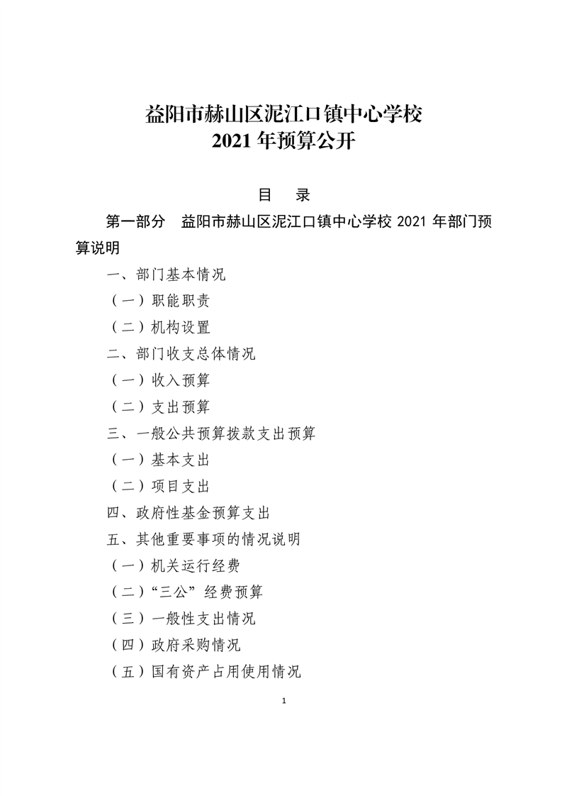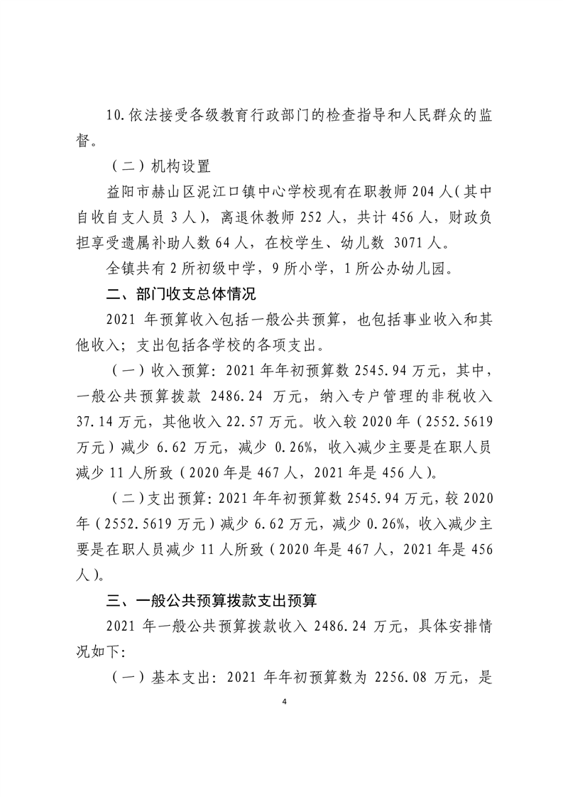 益阳市赫山区泥江口镇中心学校2021年预算公开