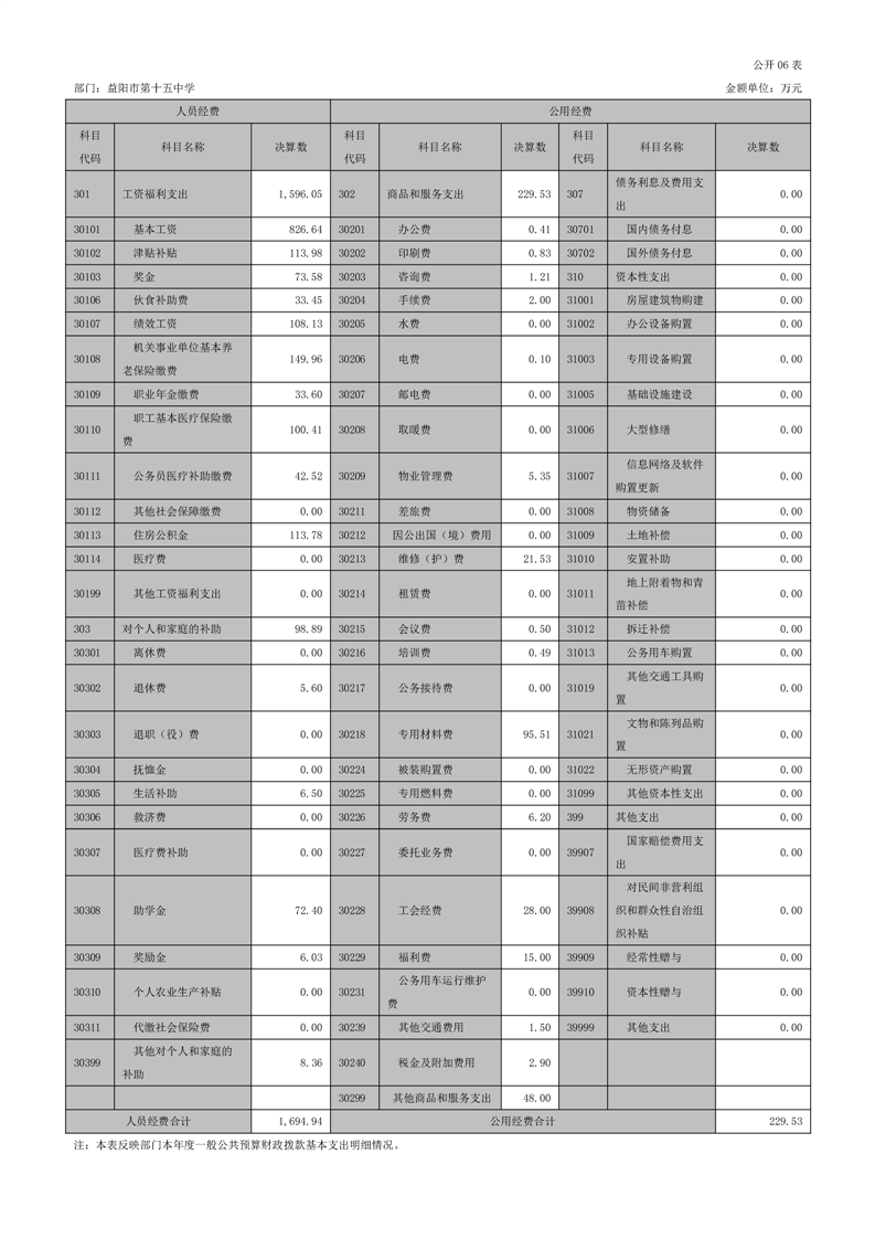 十五中单位2022年度部门决算公开