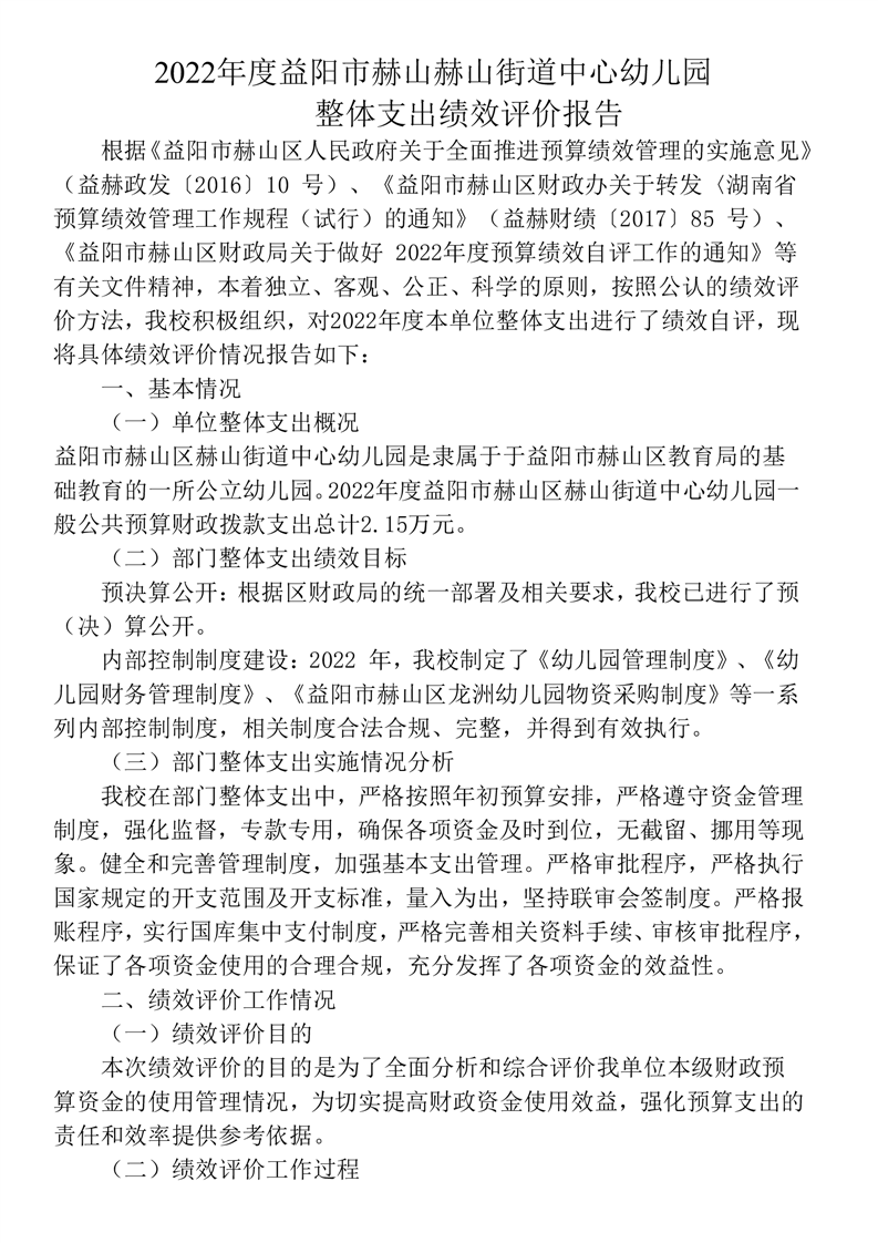 赫山区赫山街道中心幼儿园2022年度部门决算公开