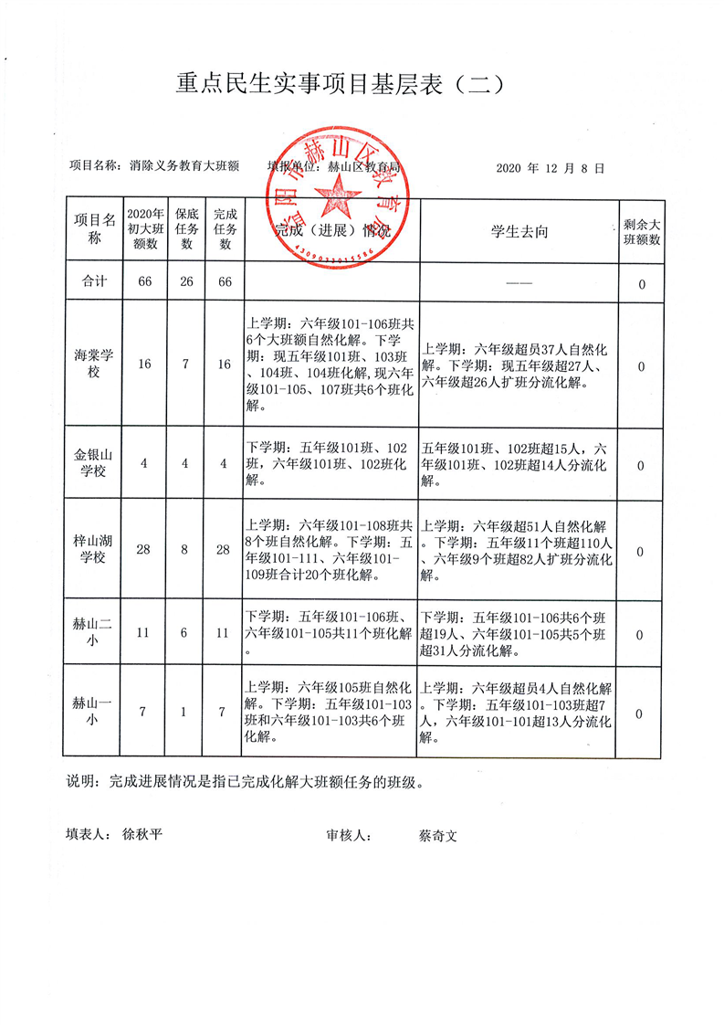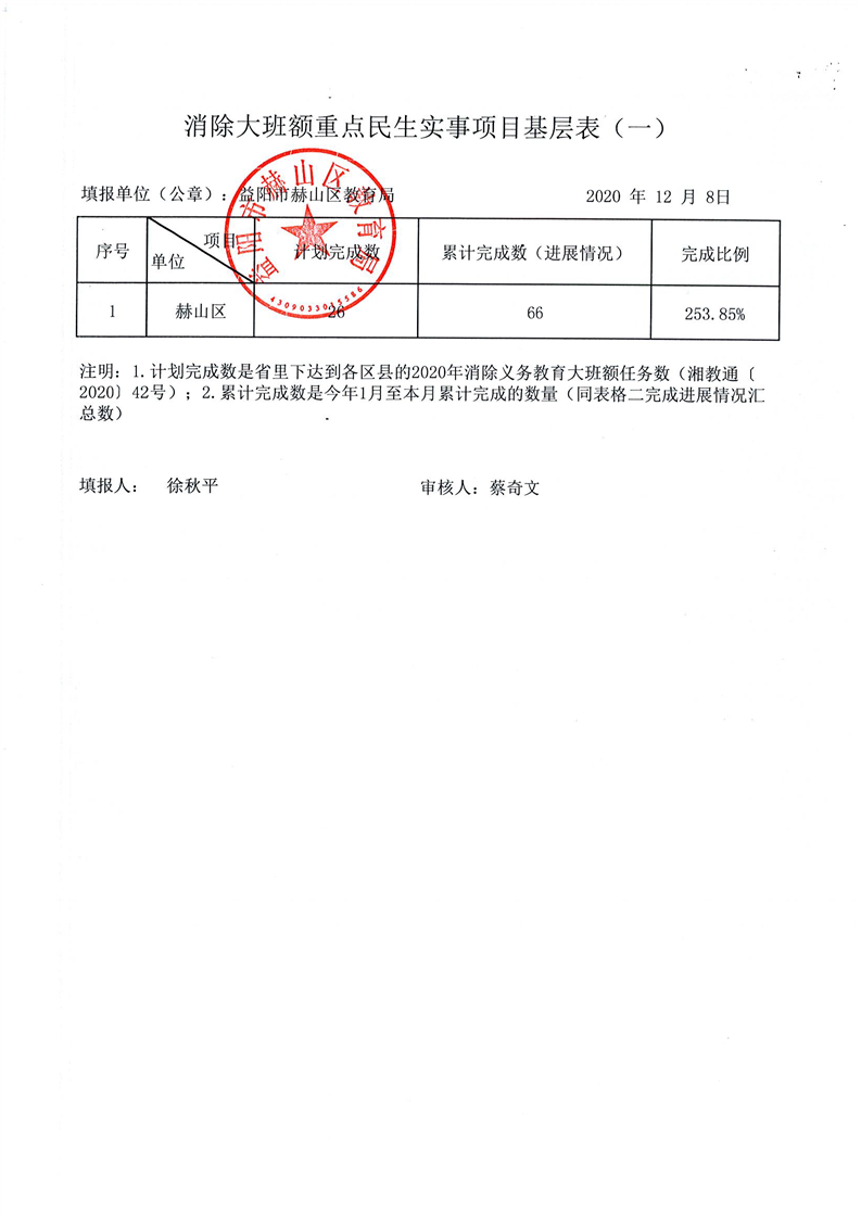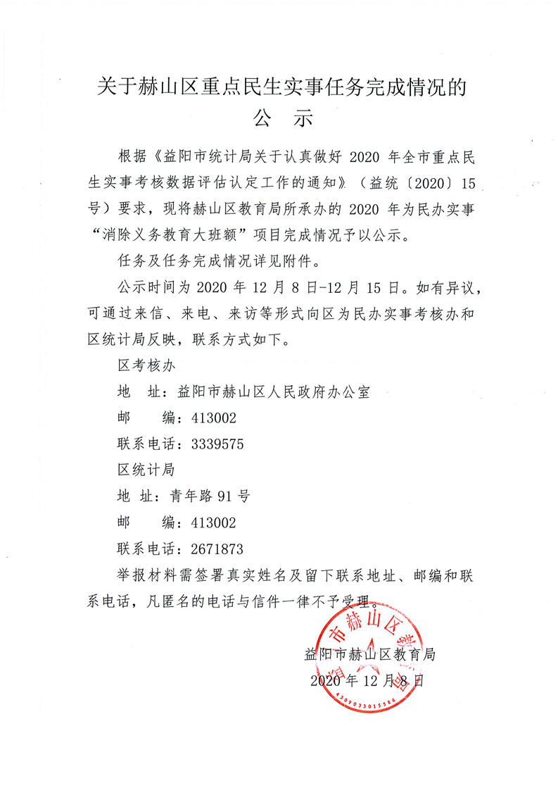 关于赫山区重点民生实事任务(消除义务教育大班额)完成情况公示