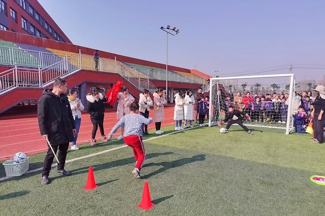 本次趣味运动会充分考虑了不同学段学生的年龄特征,分年级设置了趣味保龄球、往返接力赛、点球大战、拔河、小型篮球和足球对抗赛等众多项目。随着裁判哨响,运动会的各项比赛有序开展,原本宁静的校园顿时沸腾起来,此起彼伏的呐喊声、欢呼声不绝于耳。早就跃跃欲试的各班运动员们纷纷大展身手,成为校园里最美的风景线。