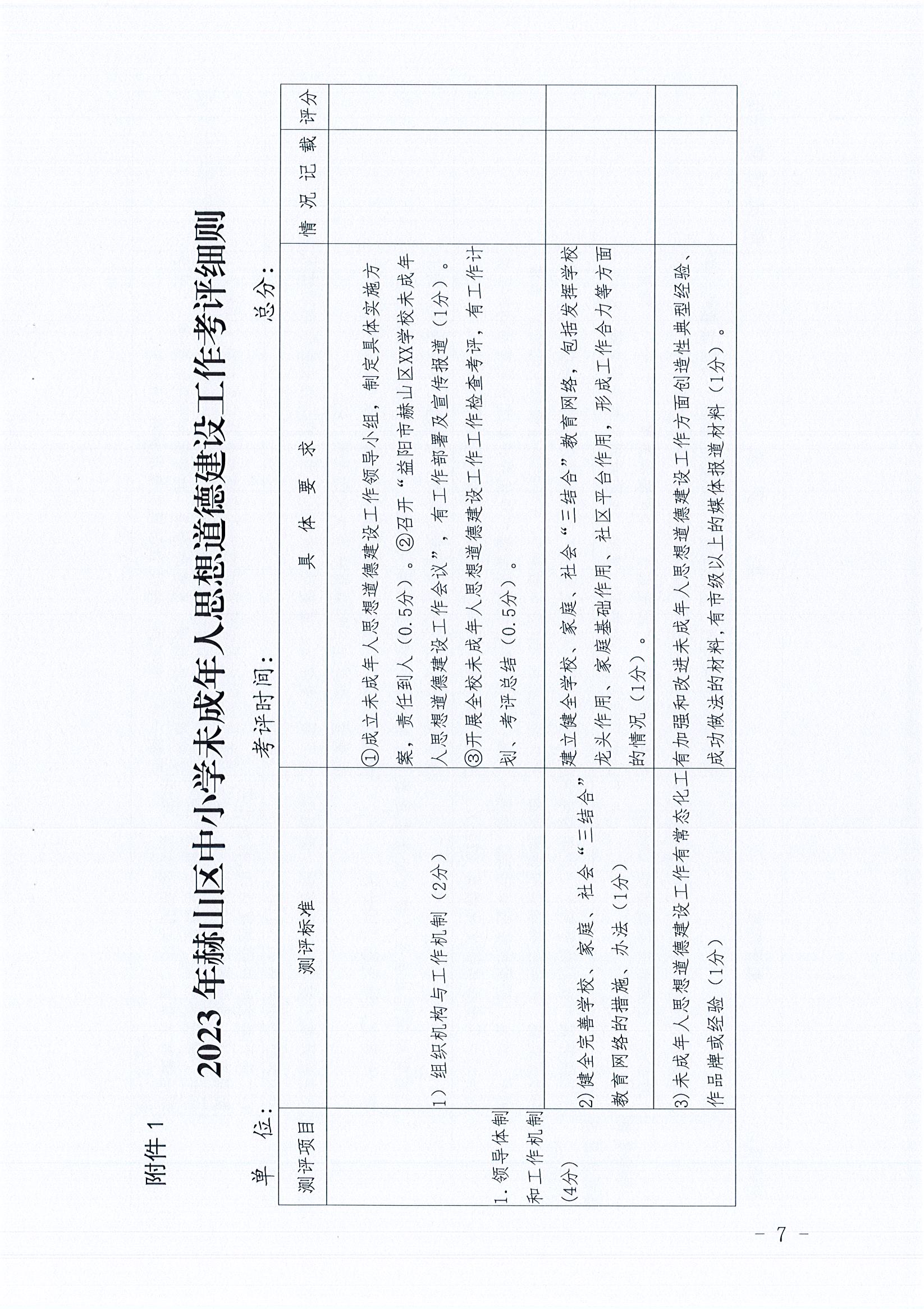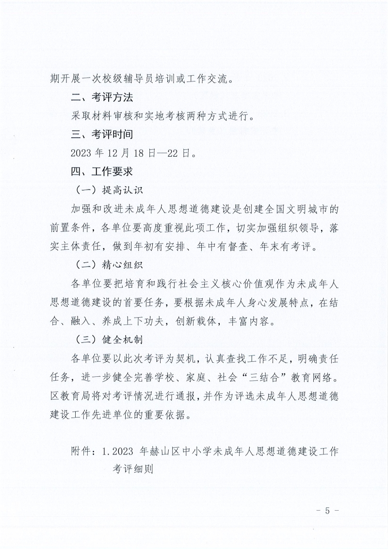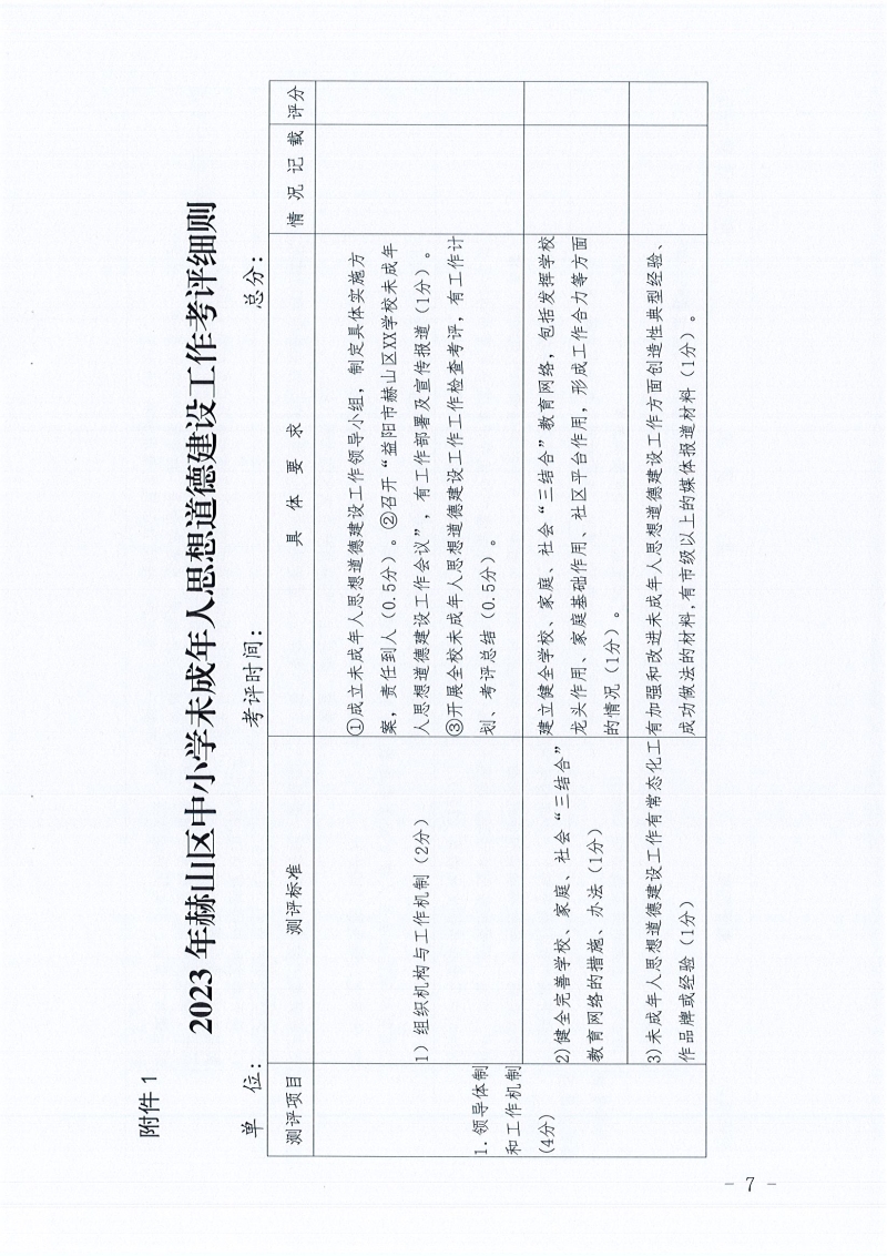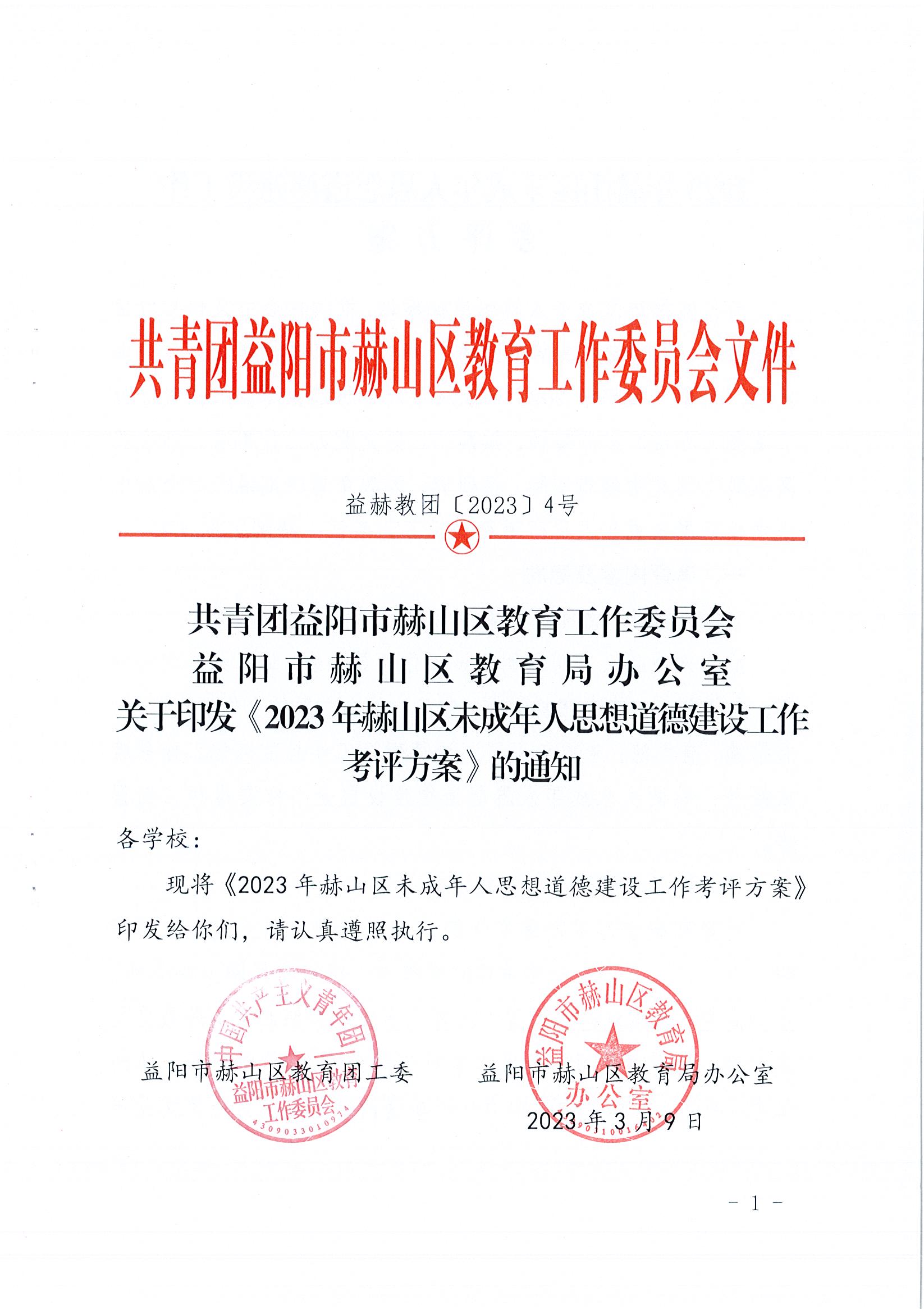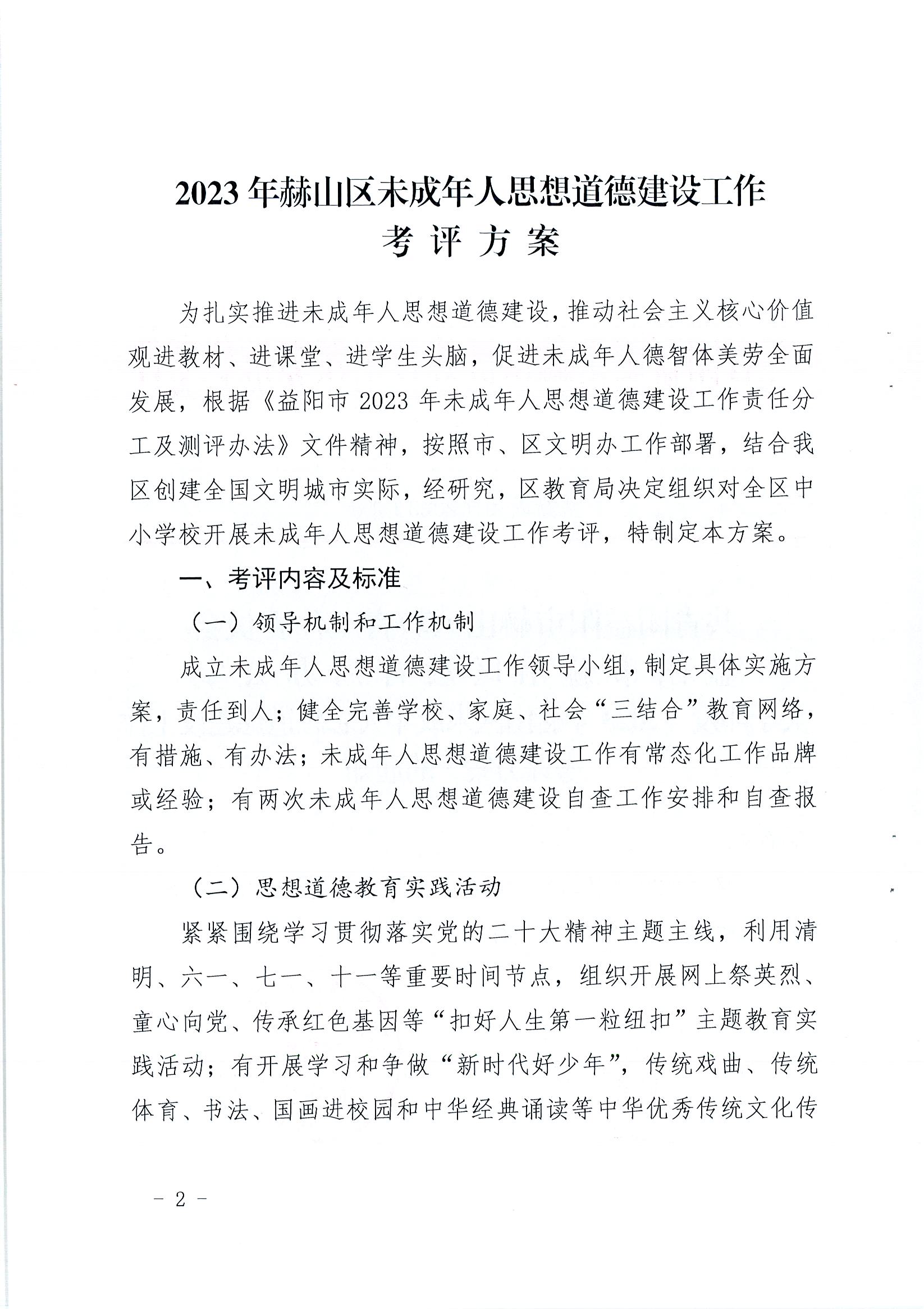 共青团益阳市赫山区教育工作委员会 益阳市赫山区教育局办公室 关于印发《2023年赫山区未成年人思想道德建设工作考评方案》的通知》