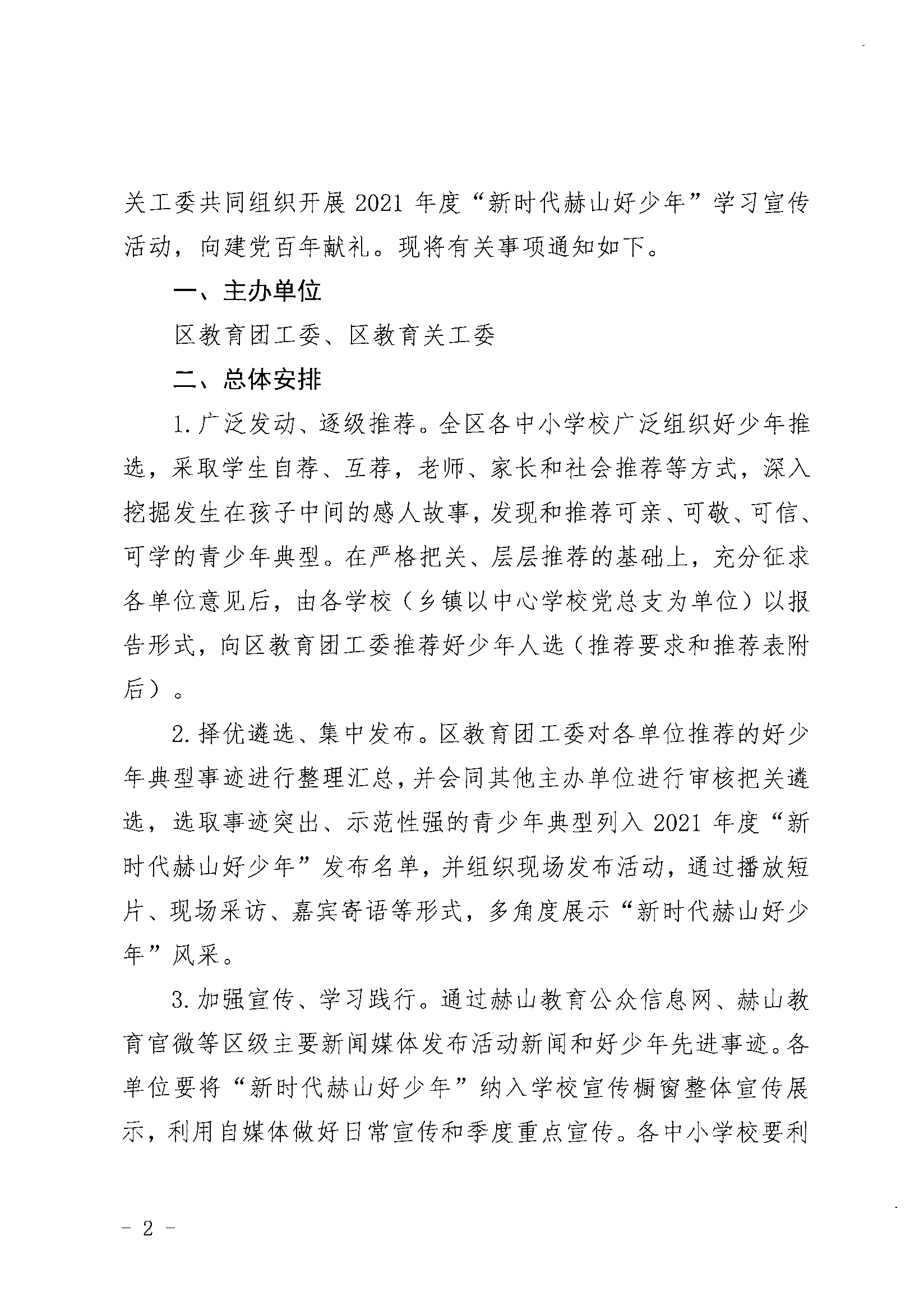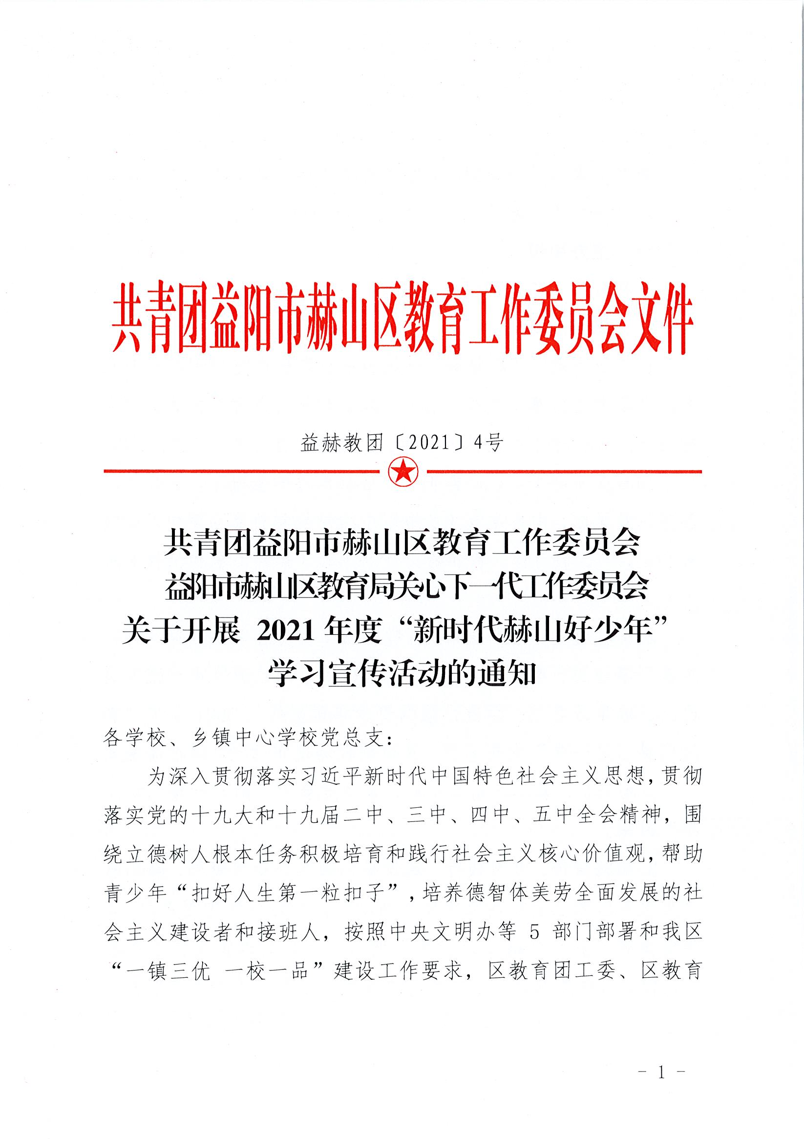 共青团益阳市赫山区教育工作委员会 益阳市赫山区教育局关心下一代工作委员会关于开展2021年度“新时代赫山好少年”学习宣传活动的通知
