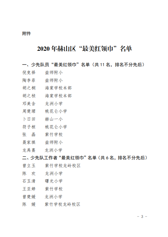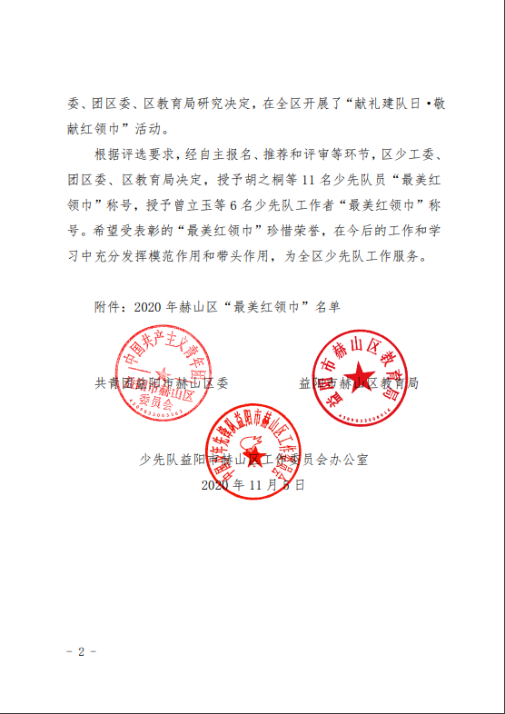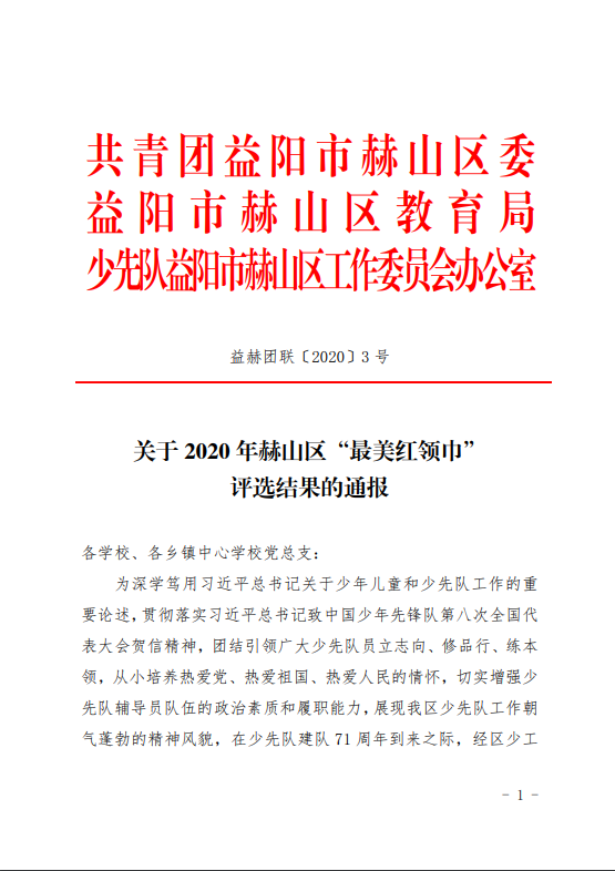 关于2020年赫山区“最美红领巾”评选结果的通报
