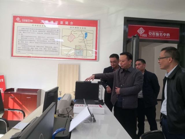 11月4日,区委常委、组织部长蔡湃一行深入金银山街道调研指导软弱涣散基层党组织整顿、社区“两委”换届选举等工作。区委组织部副部长周文波陪同调研。