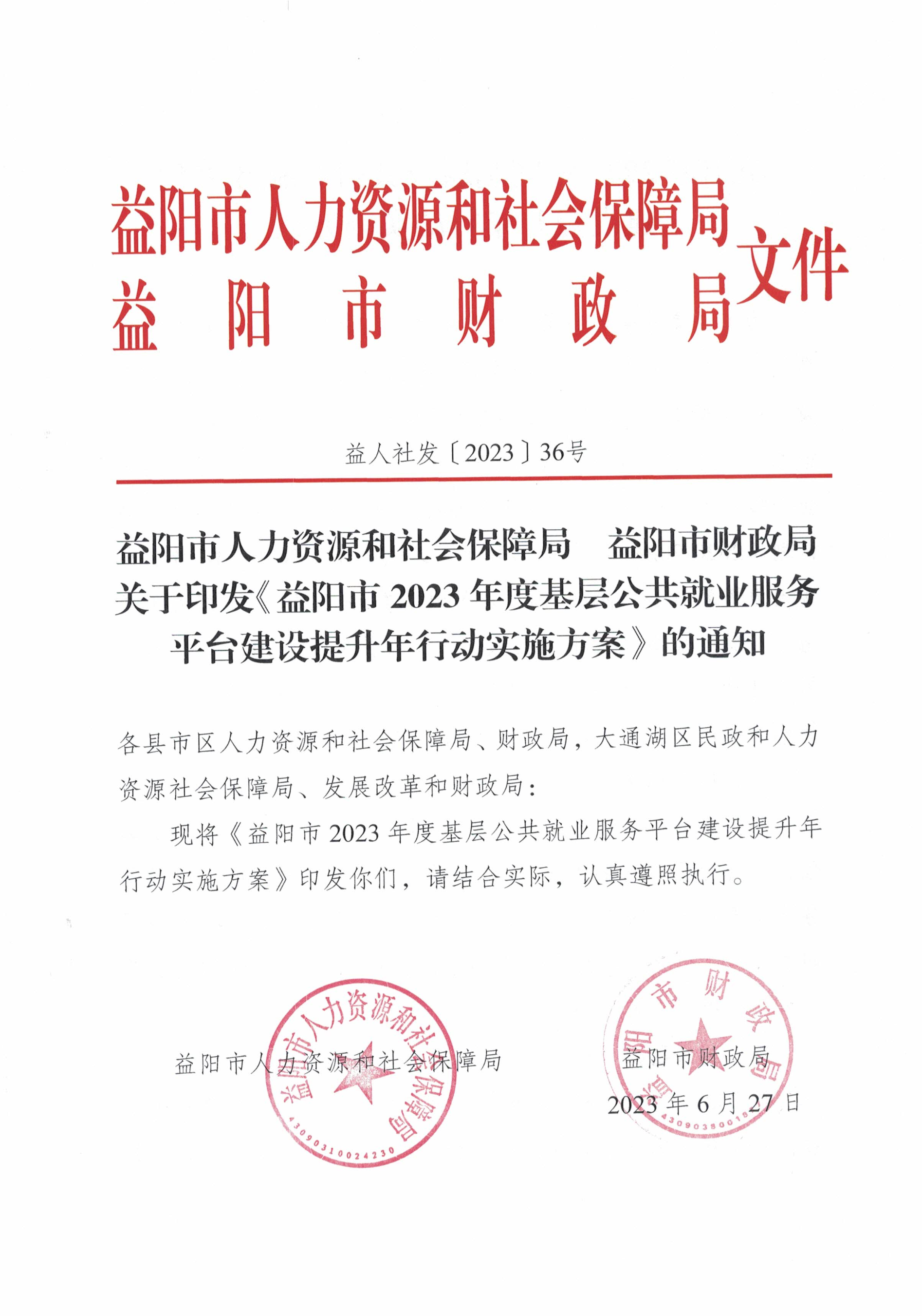 益人社发[2023]36号-益阳市2023年公共就业服务平台建设提升年行动实施方案