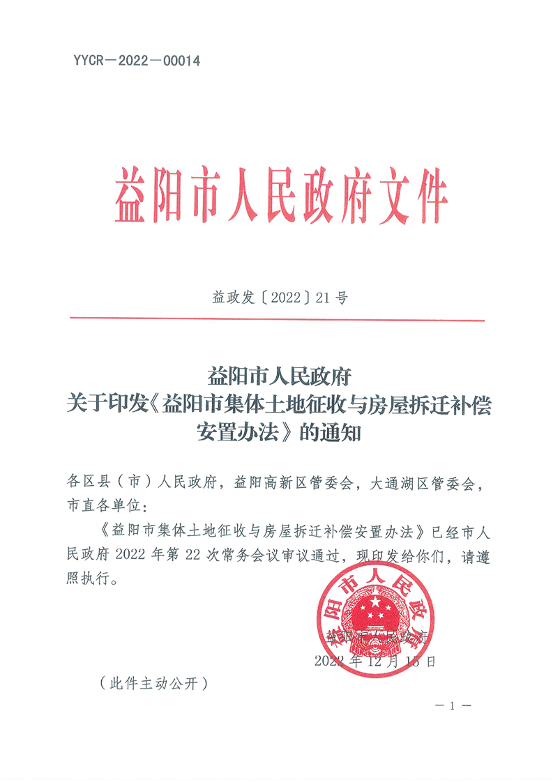 益阳市集体土地征收与房屋拆迁补偿安置办法(益政发〔2022〕21号)