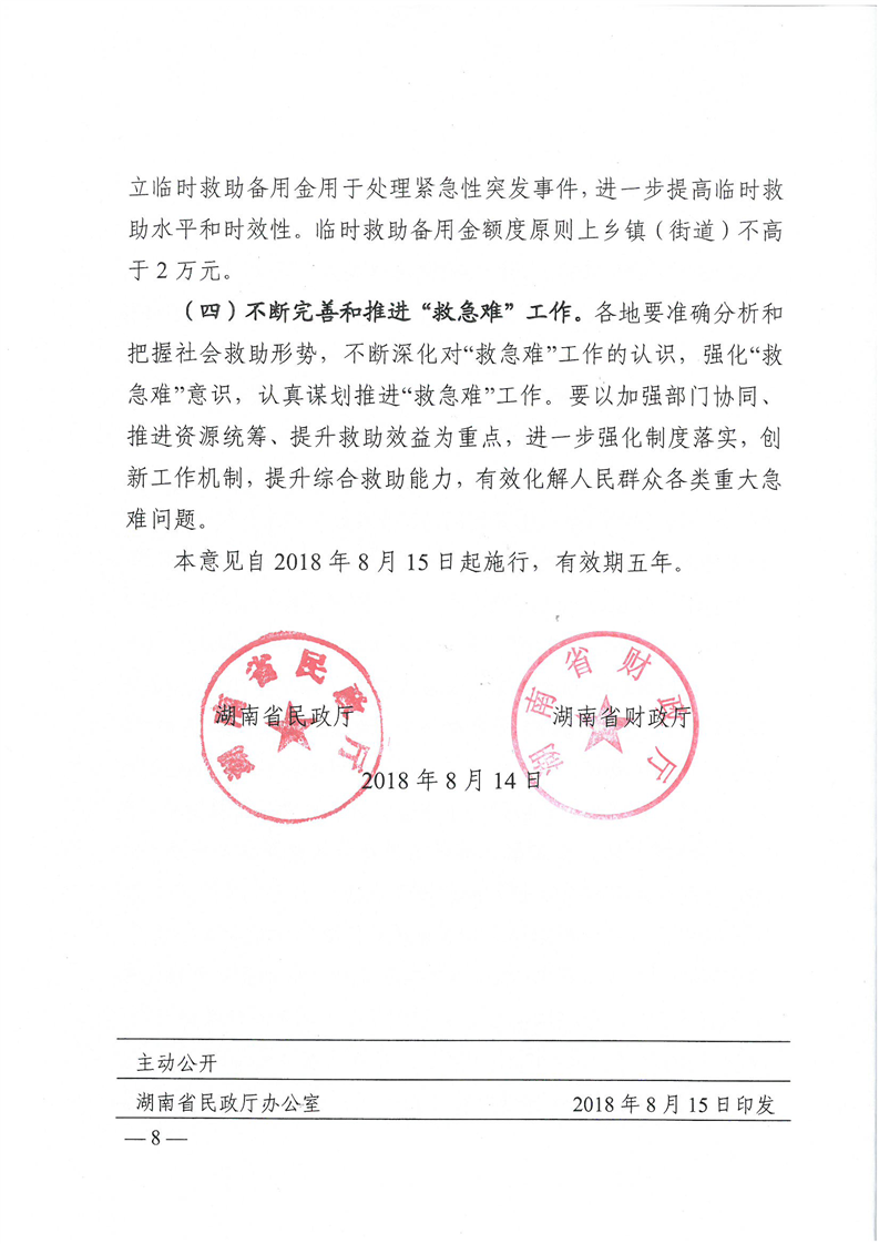 | 公开依据 | 湖南省民政厅 湖南省财政厅关于进一步加强和改进临时救助工作的实施意见 | ||