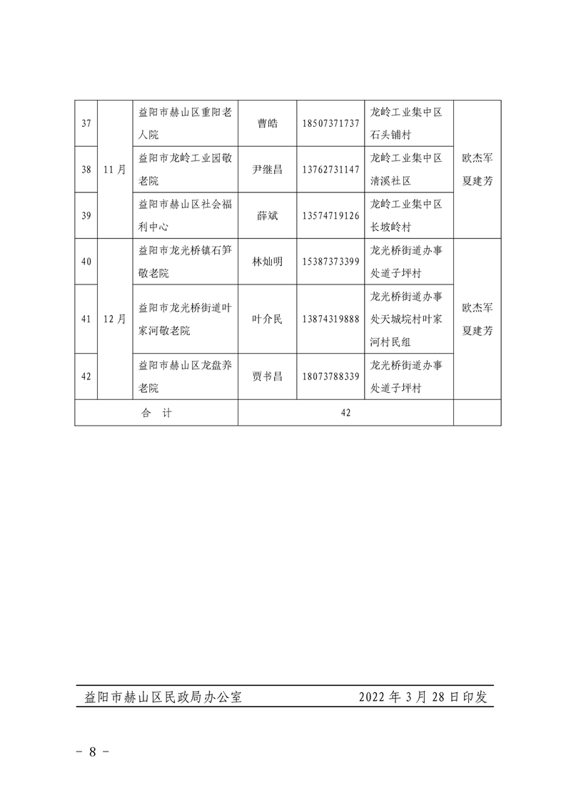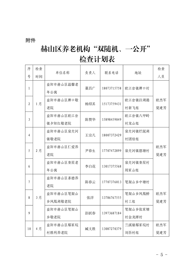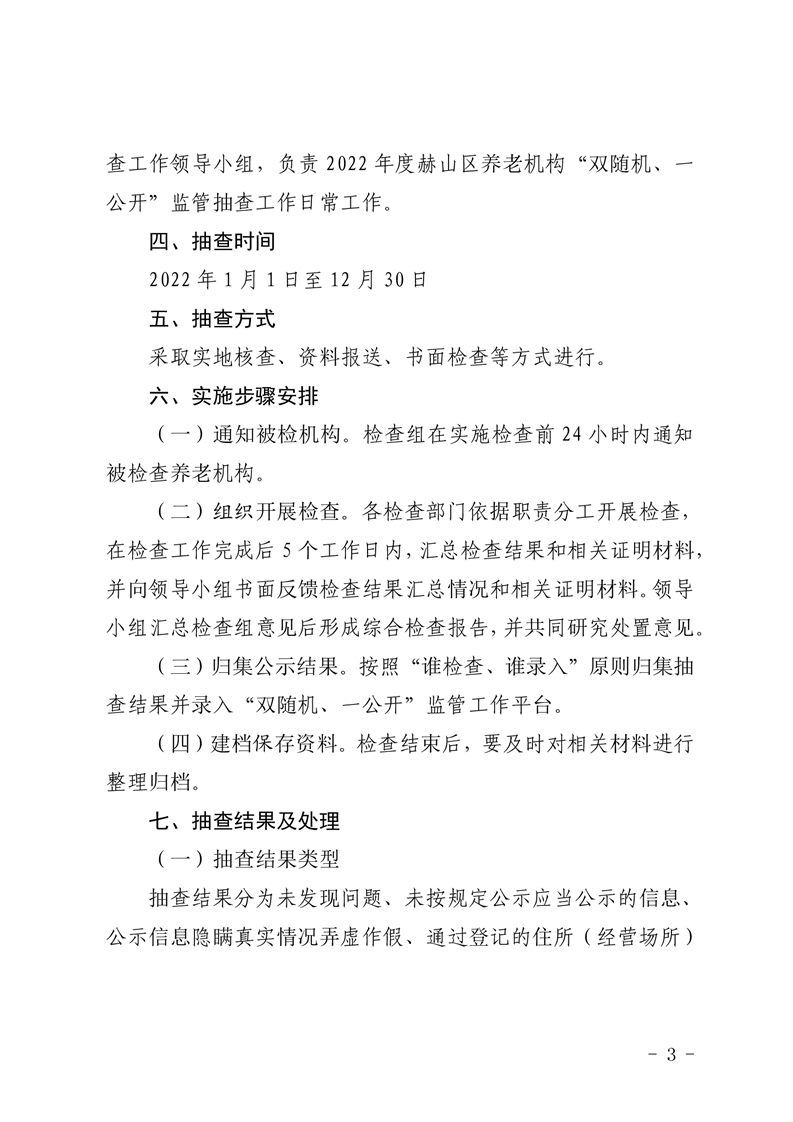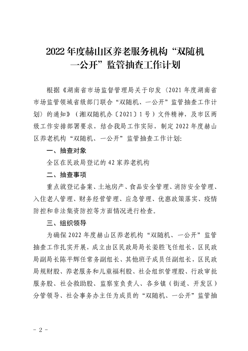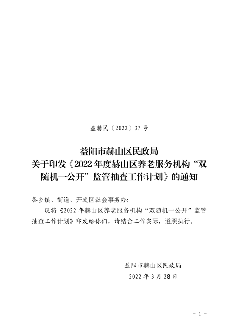 关于印发《2022年度赫山区养老服务机构“双随机一公开”监管抽查工作计划》的通知