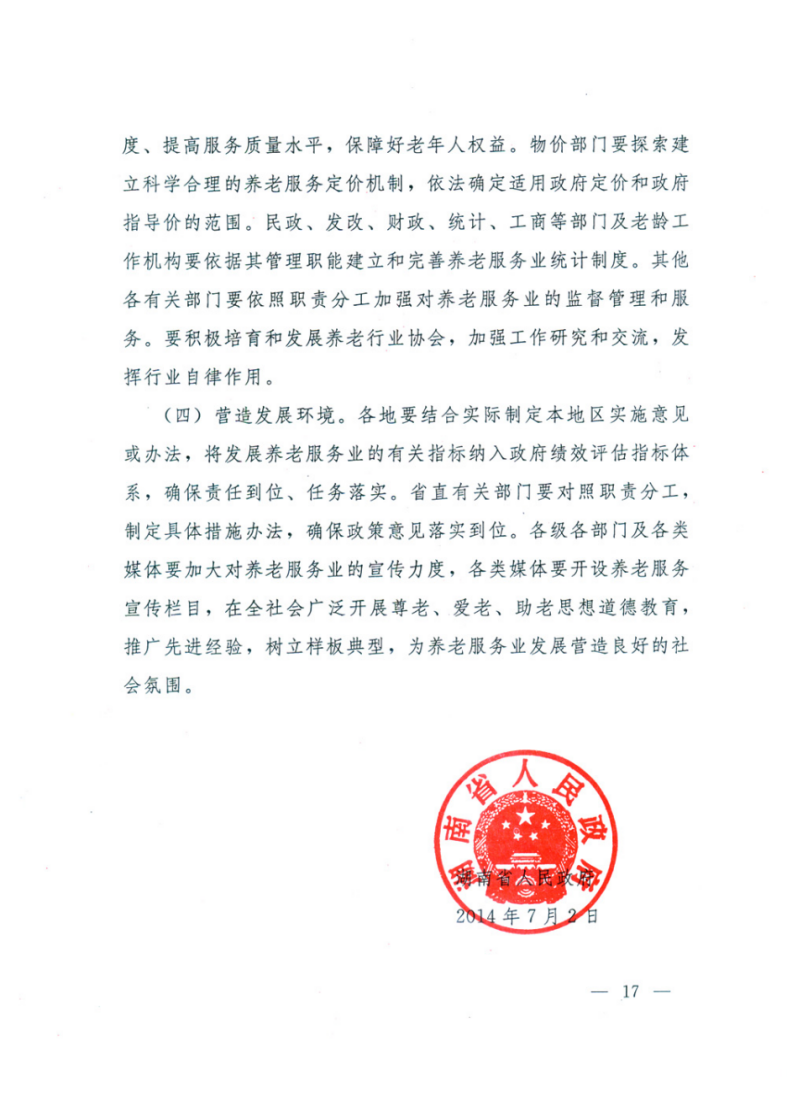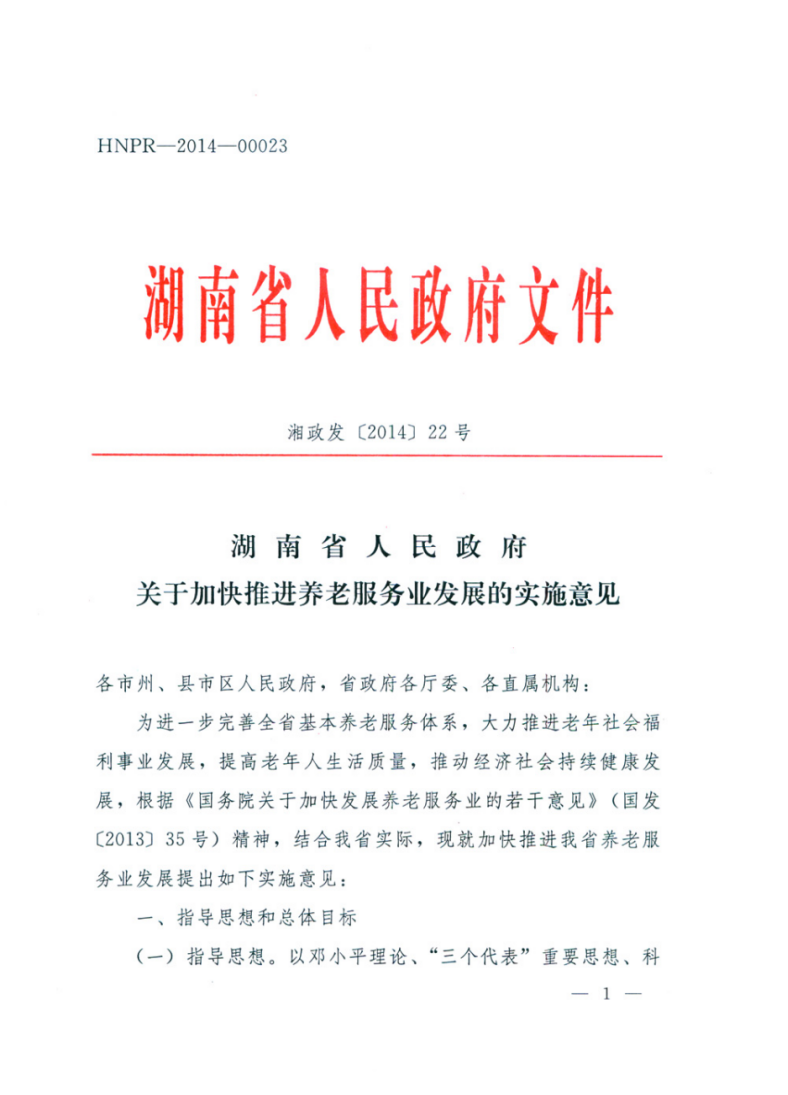 | 公开依据 | (湘政发[2014]22号) 湖南省人民政府关于加快推进养老服务业发展的实施意见 | ||