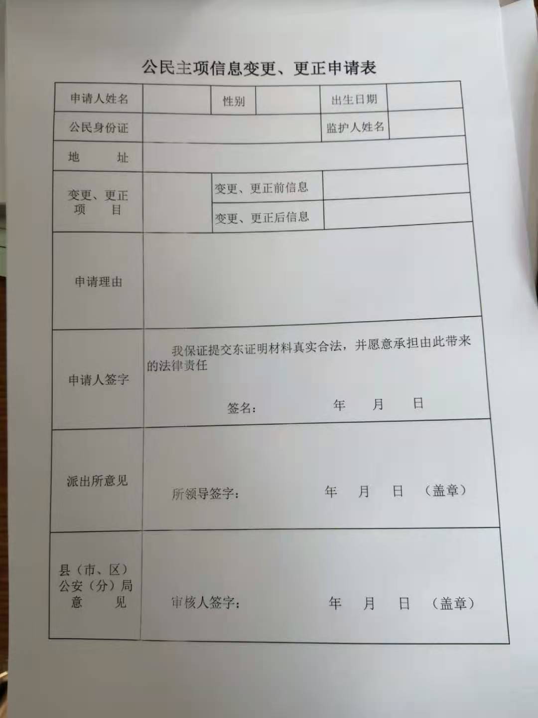户口登记项目变更更正