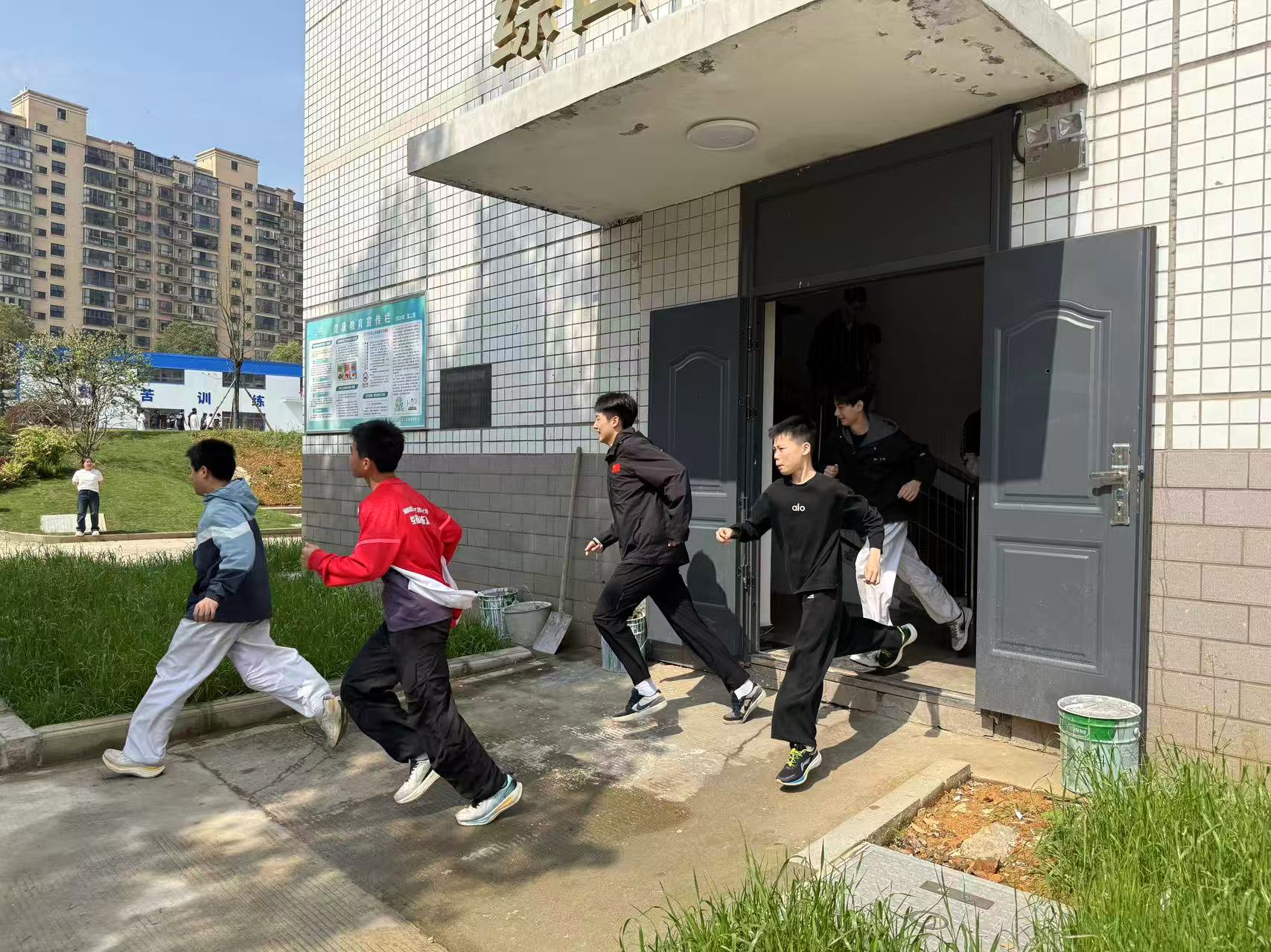 随着警报声响起,疏散演练正式开始。全体师生按照预定路线,弯腰低姿、捂住口鼻,迅速有序撤离至安全区域。整个演练过程紧张有序,达到了预期效果。