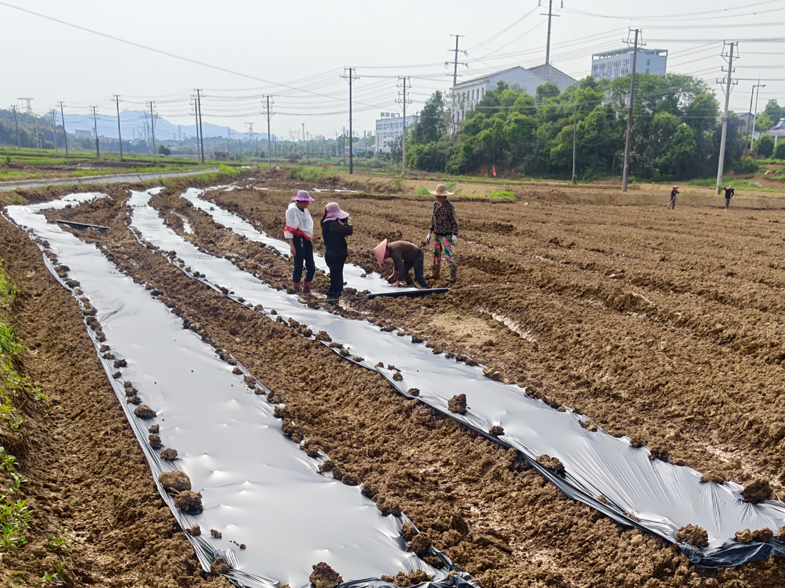 4月19日,在兴泉村玉米试验种植基地田间地头上,十余名农户抢抓晴好农时,分工协作、干劲十足,有条不紊地开展整地、播种、覆膜等作业,一幅春潮涌动、农事繁忙的生动画卷徐徐展开。