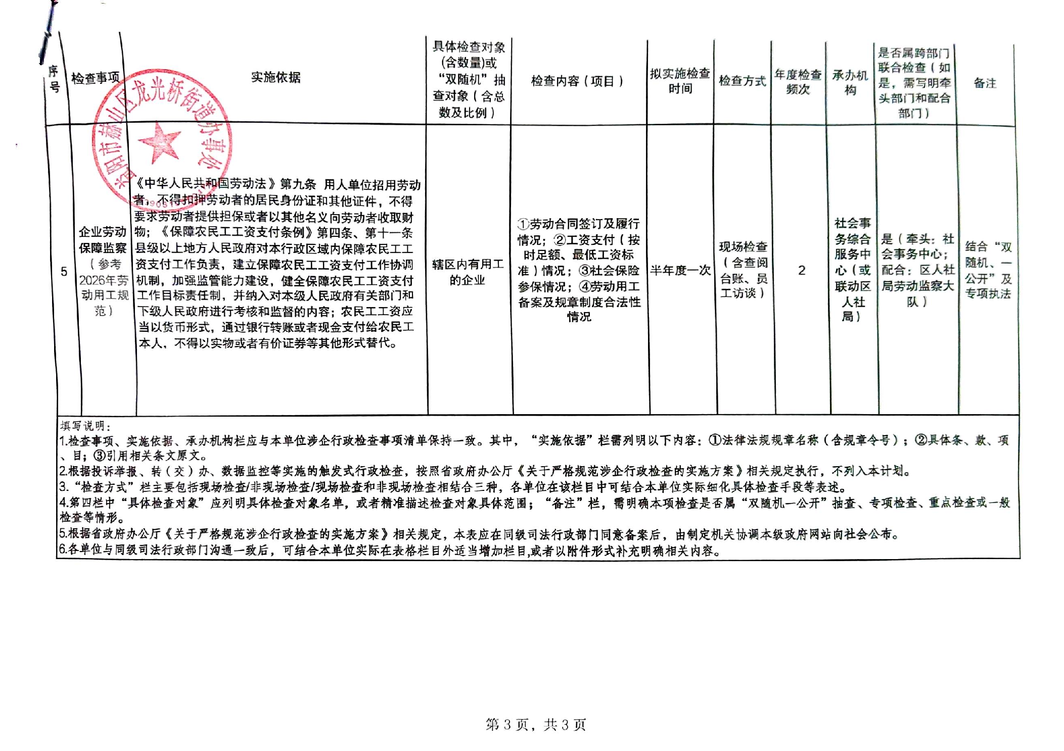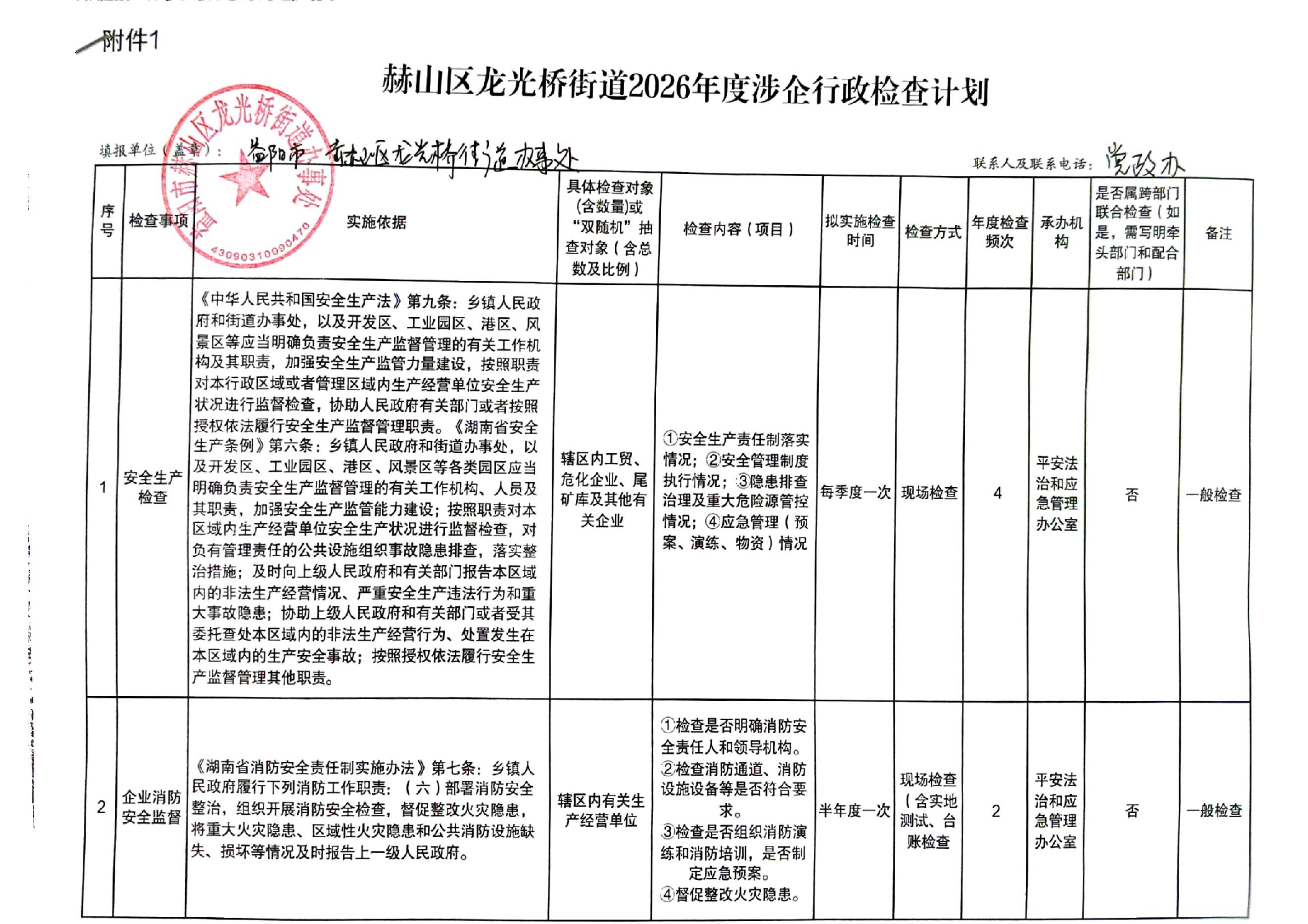 赫山区龙光桥街道2026年度涉企行政检查计划