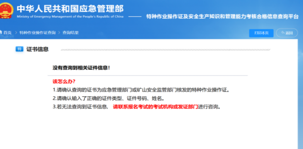 经查询中华人民共和国应急管理部特种作业操作证及安全生产知识和管理能力考核合格信息查询平台,未查到李某特种作业操作证信息。