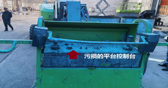 2.物的不安全状态:控制台面板油漆污损导致操作标识缺失,直接影响操作人员对按钮功能的辨识,增加误操作风险;设备未设置安全警示标志,未对高空作业、设备操作风险进行有效提示,不符合特种设备(虽不属特种设备,但应符合通用安全标准)及高空作业设备的基本安全技术要求。