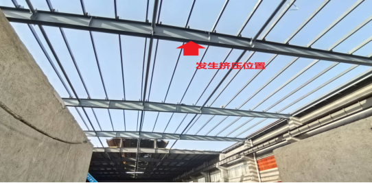 发生挤压机械伤害事故的4#生产厂房钢结构梁底位置示意图