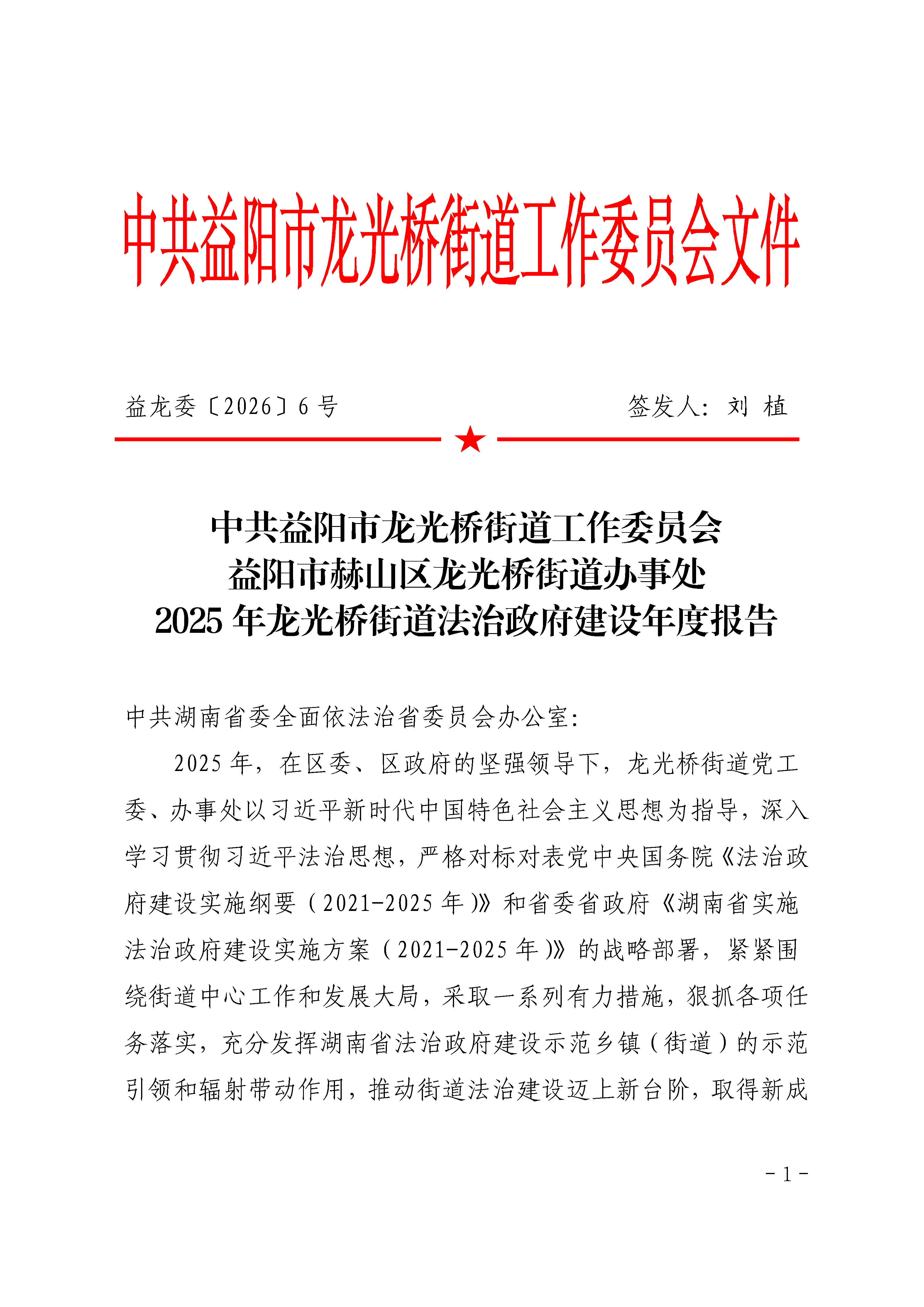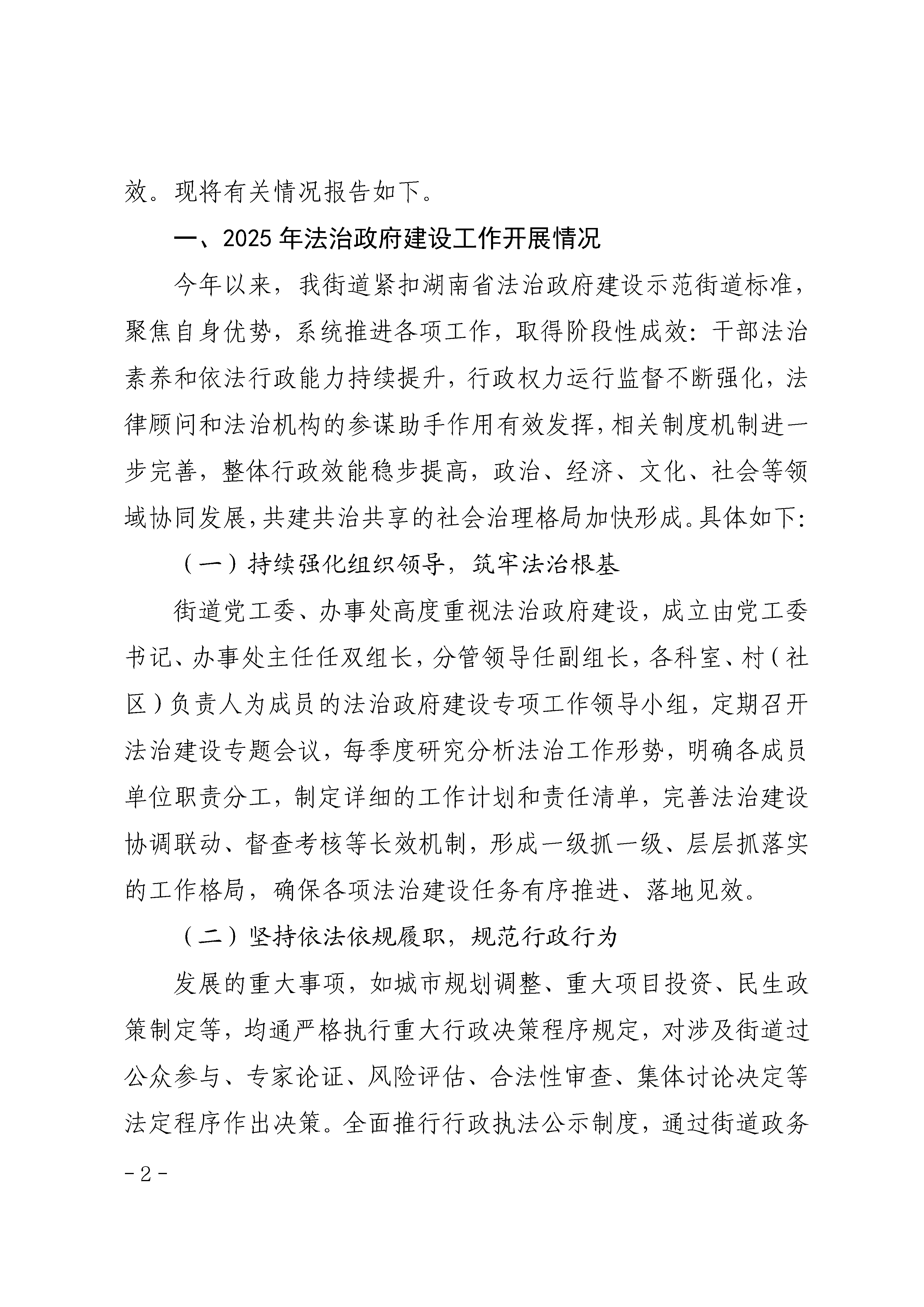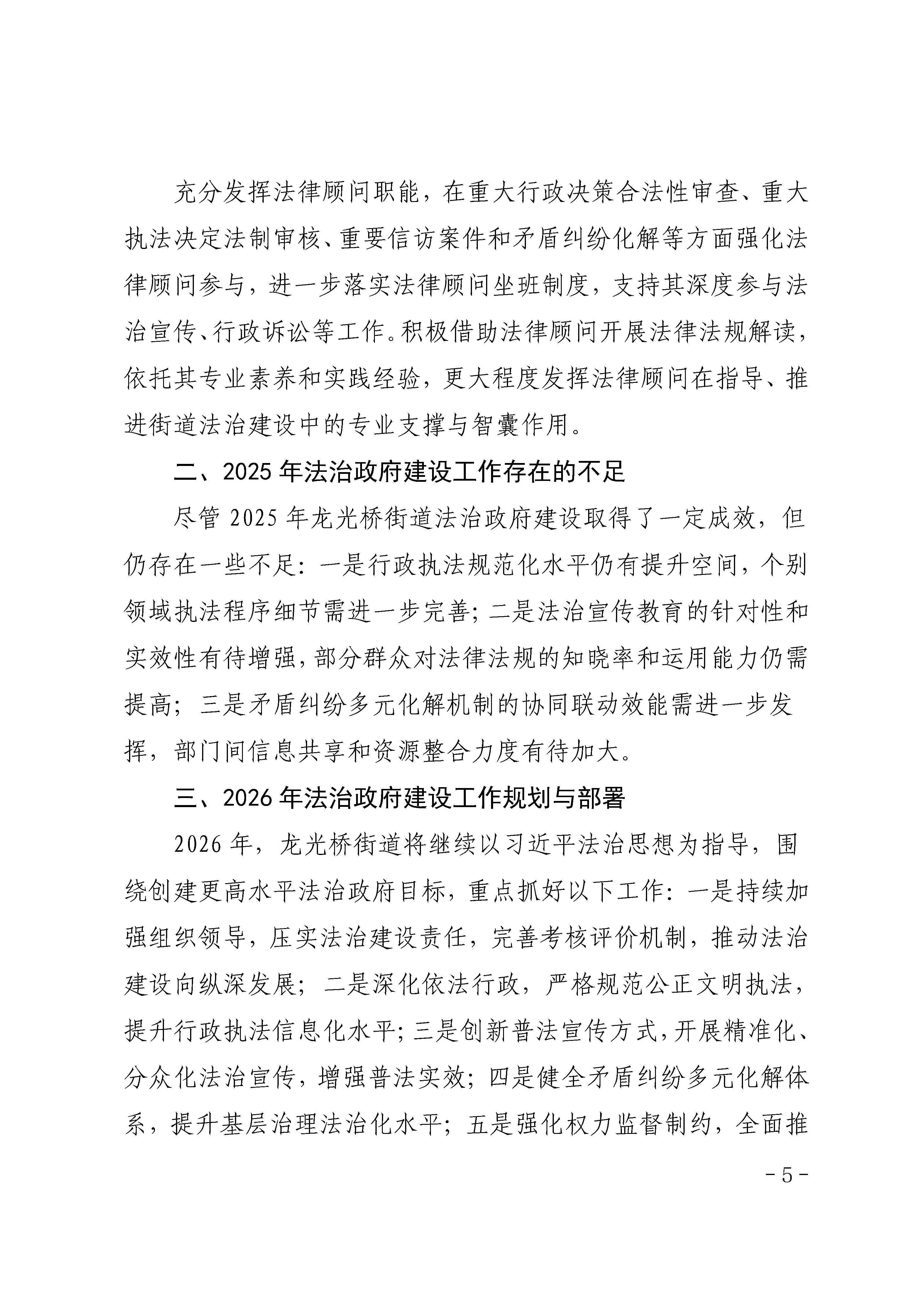 2025年龙光桥街道法治政府建设年度报告