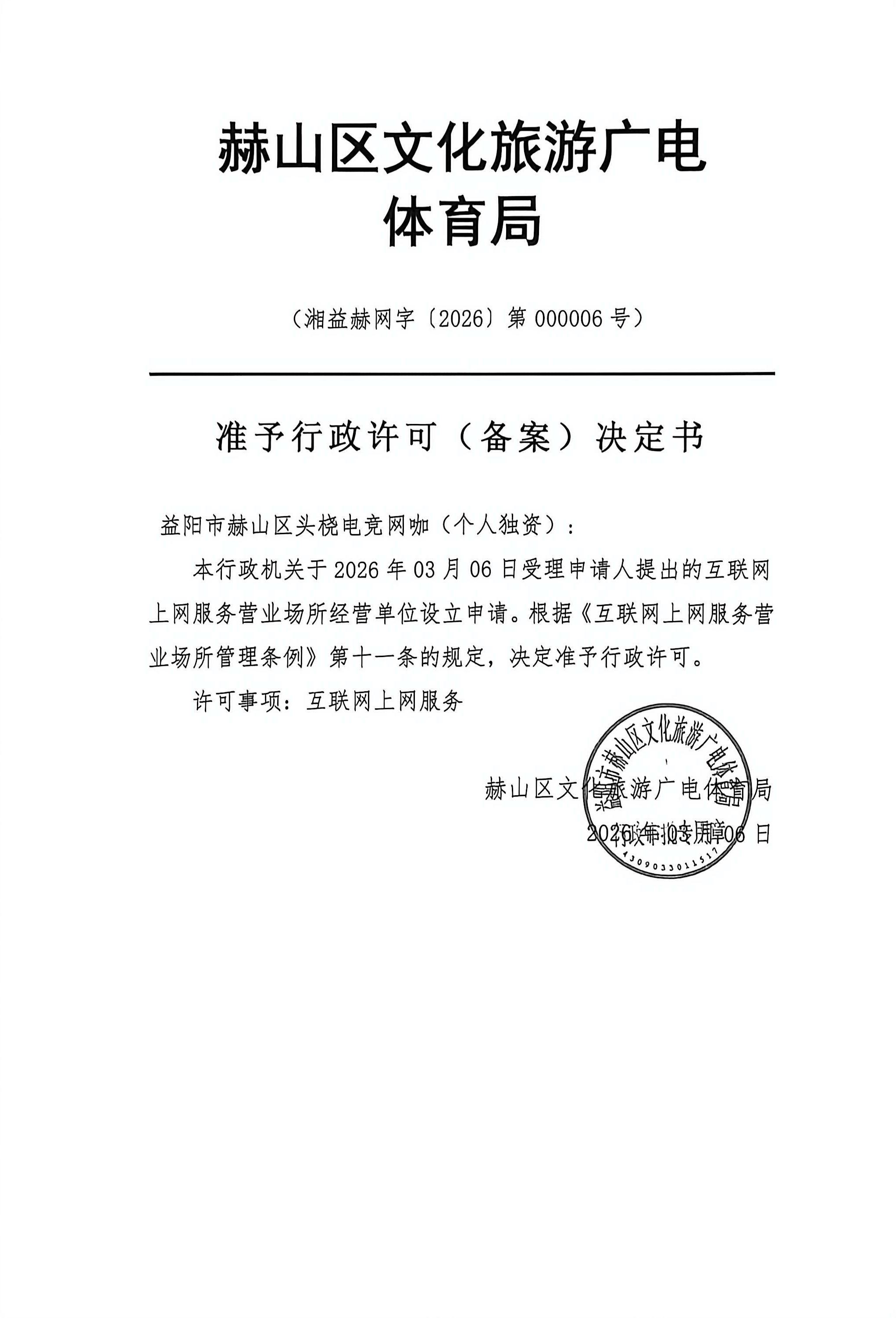 赫山区文化旅游广电体育局 准予行政许可(备案)决定书