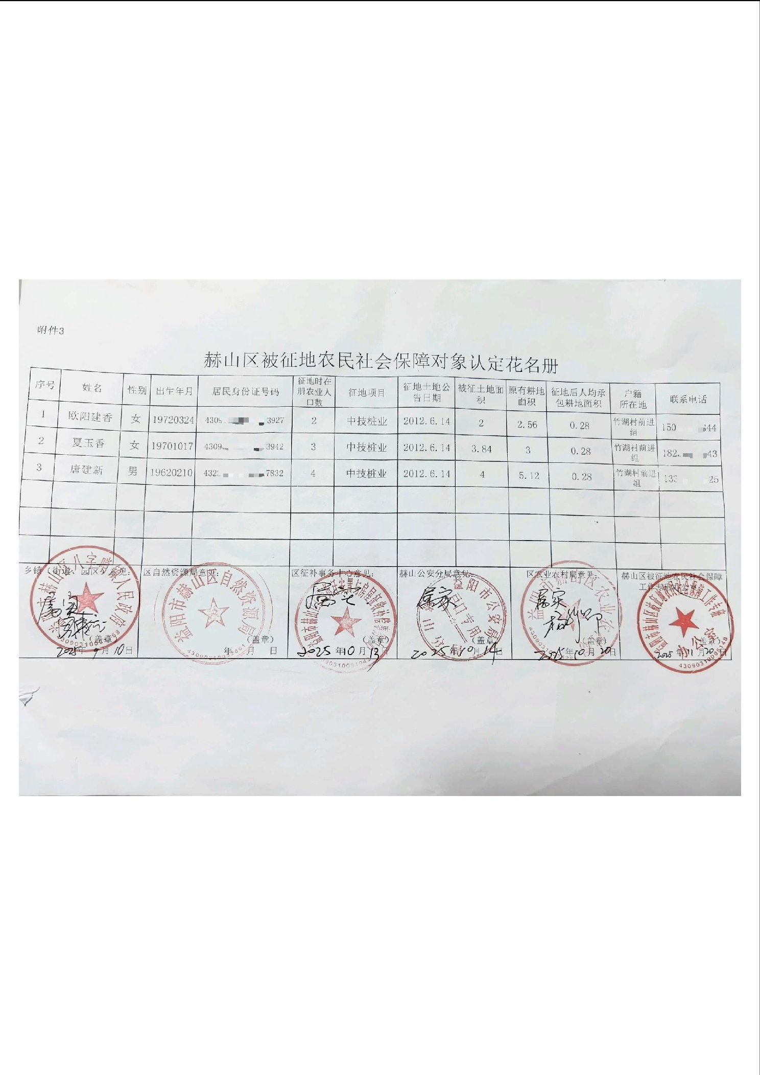 赫山区八字哨镇被征地农民社会保障对象认定花名册公示