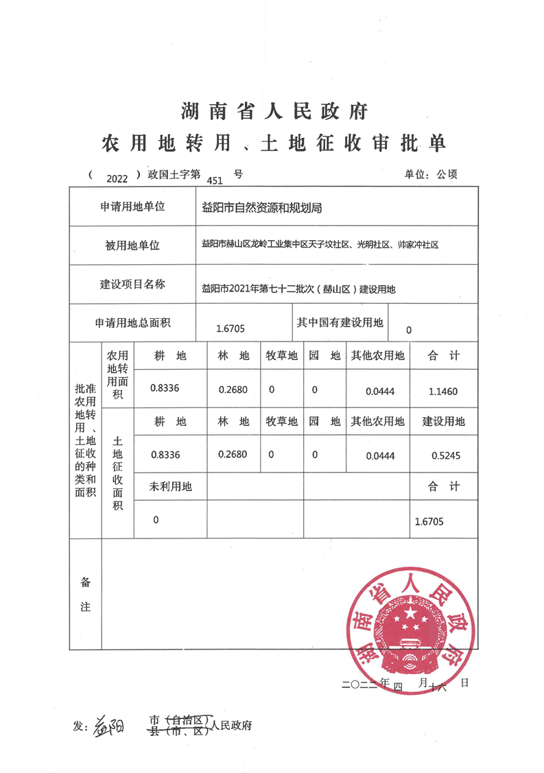 农用地转用、土地征收审批单(2022)政国土字第451号