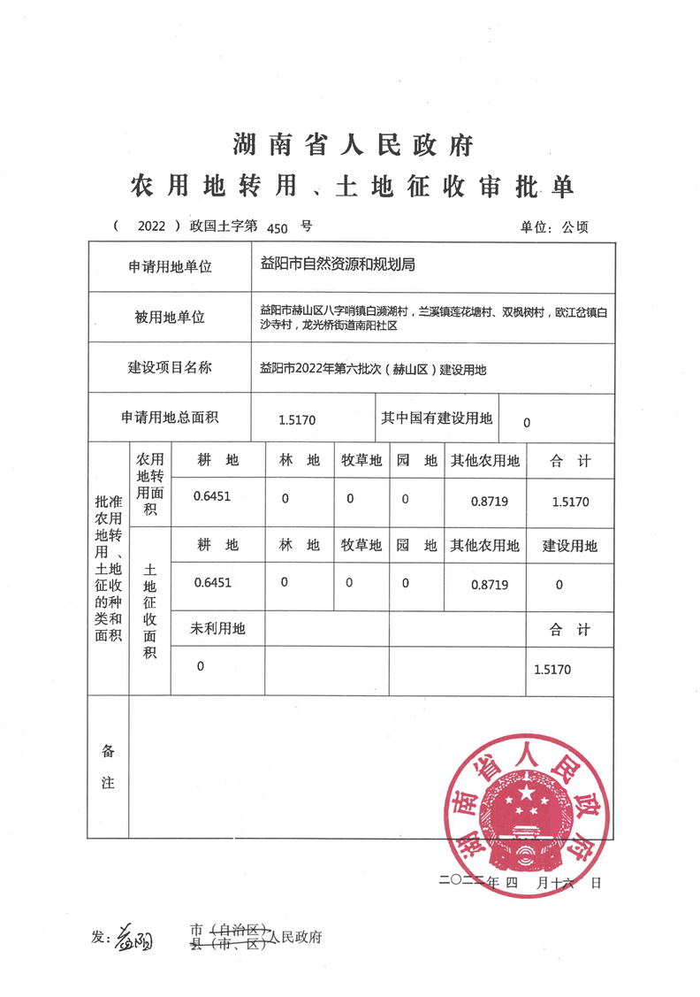 农用地转用、土地征收审批单(2022)政国土字第450号