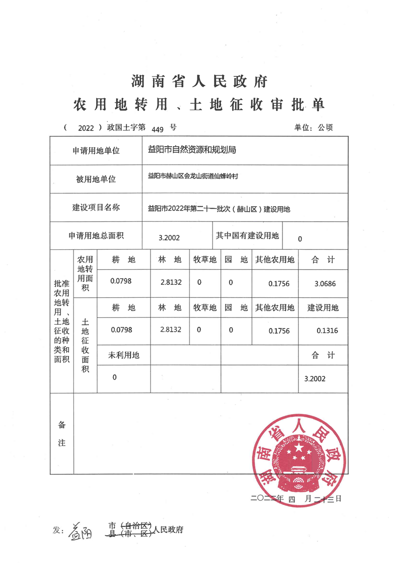 农用地转用、土地征收审批单(2022)政国土字第449号