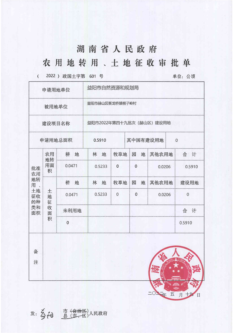 农用地转用、土地征收审批单(2022)政国土字第601号