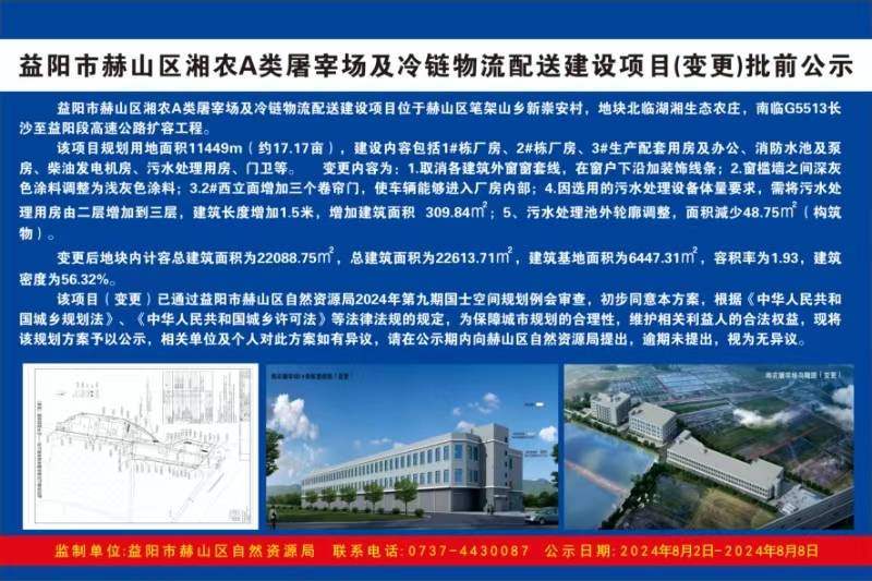 益阳市赫山区湘农A类屠宰场及冷链物流配送建设项目(变更)批前公示