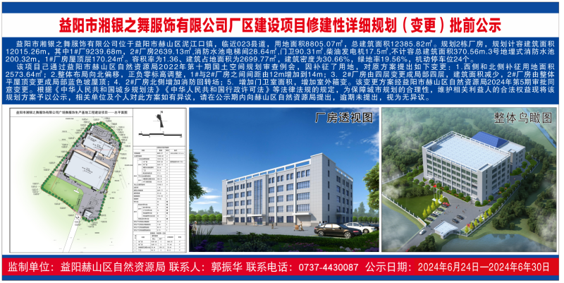 益阳市湘银之舞服饰有限公司厂区建设项目修建性详细规划(变更)批前公示