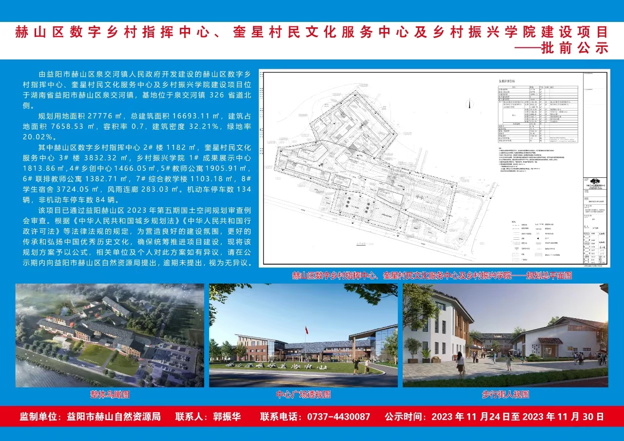 赫山区数字乡村指挥中心、奎星村民文化服务中心及乡村振兴学院建设项目修建性详细规划方案批前公示