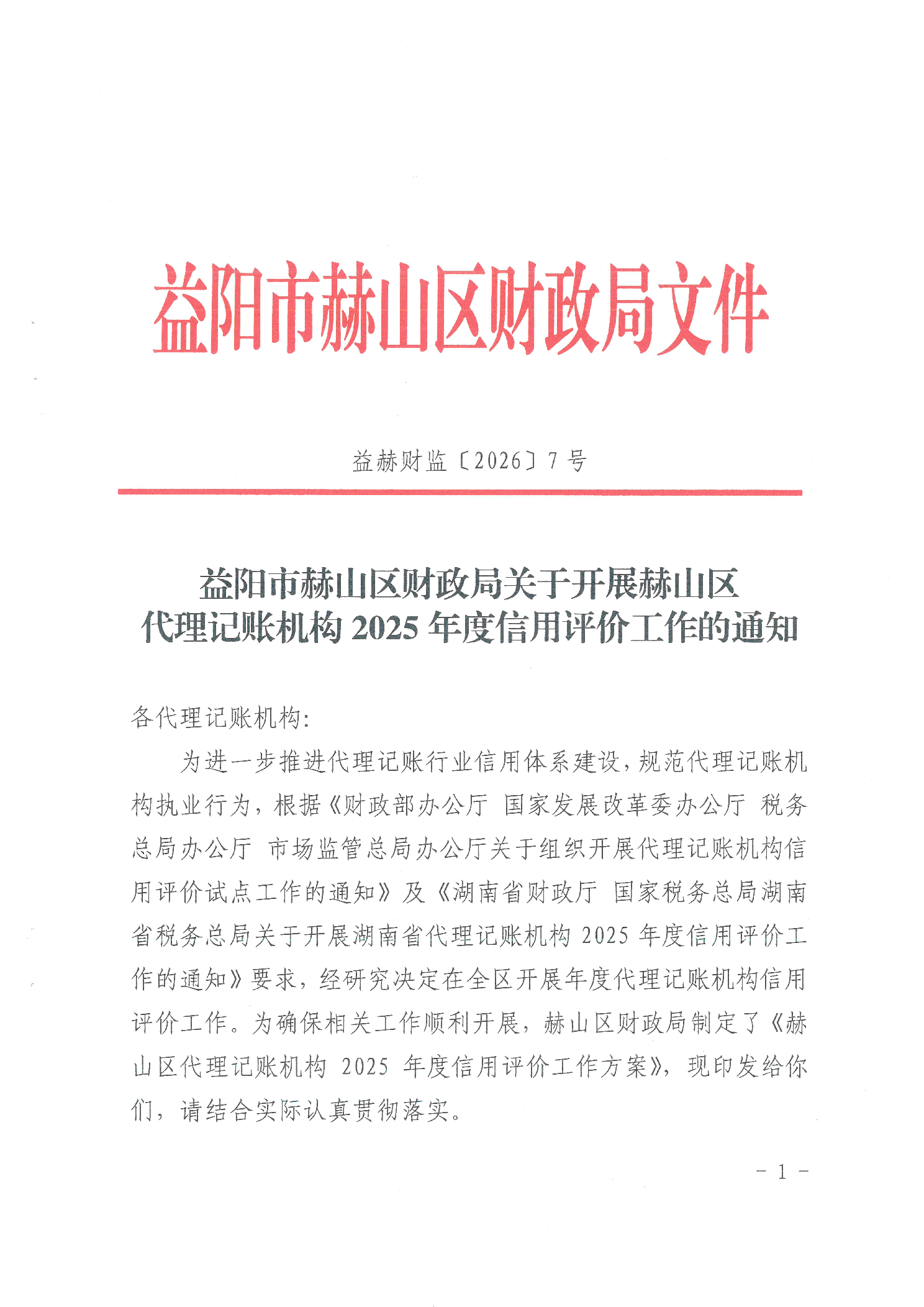 益阳市赫山区财政局关于开展赫山区代理记账机构2025年度信用评价工作的通知
